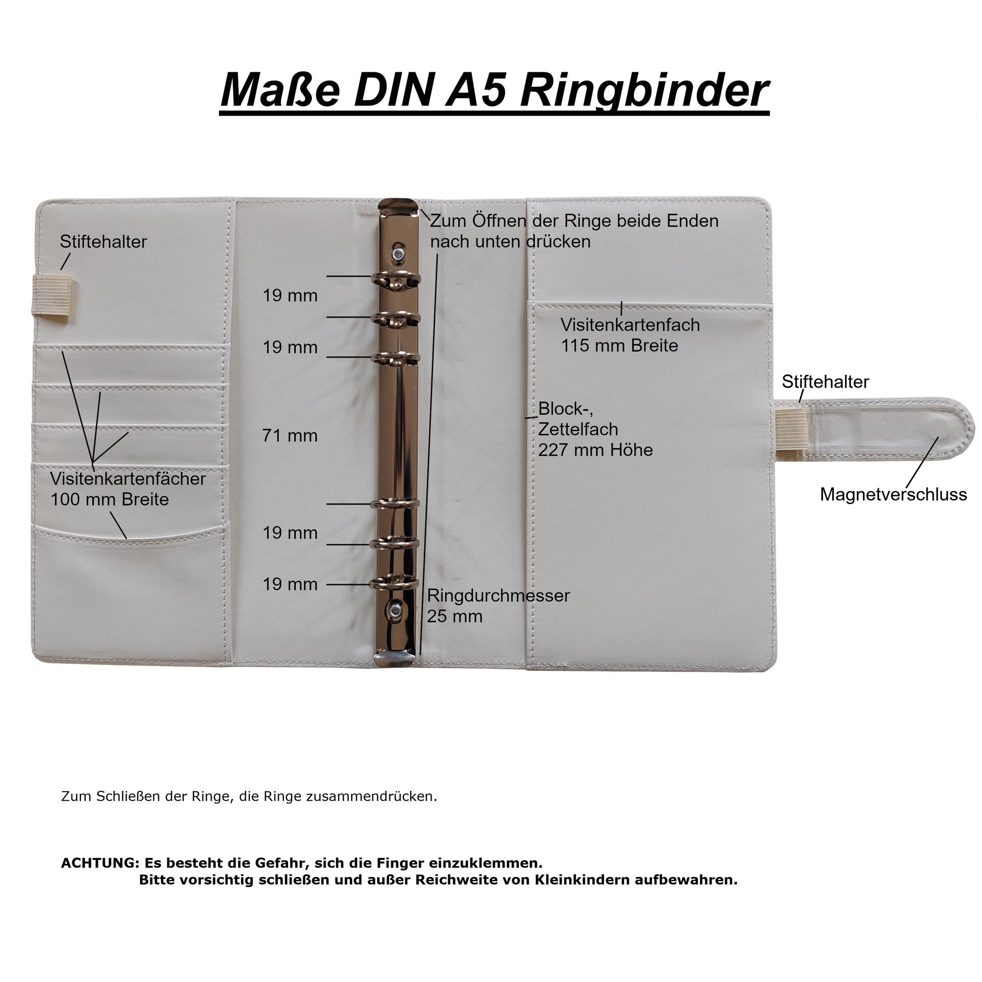 Format: Mit einem kompakten DIN A5-Format (148 x 210 mm) ist dieses Ringbuch ideal für unterwegs oder für den Schreibtisch. Es bietet ausreichend Platz für Notizen, Gedanken und kreative Ideen.