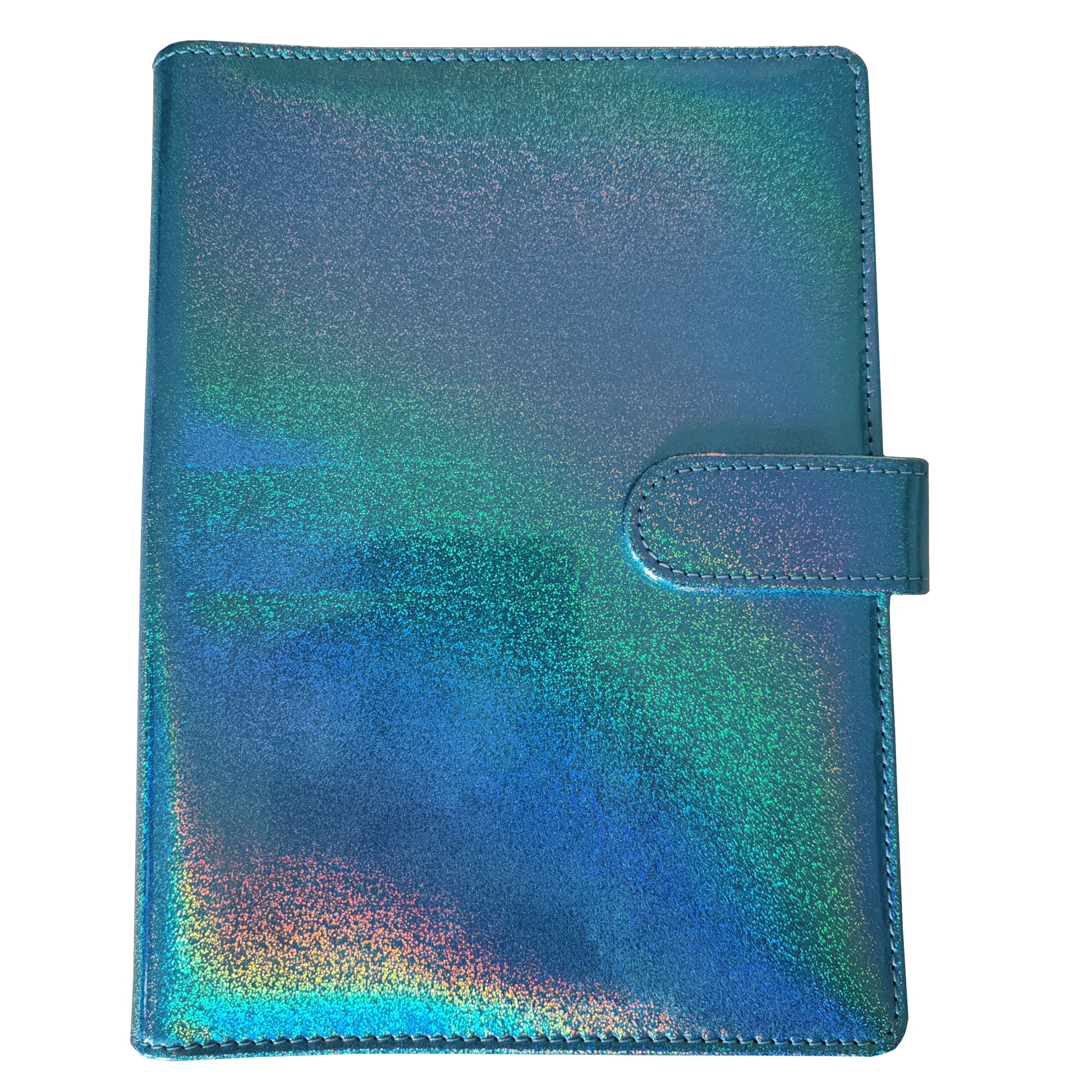 Material: Das Ringbuch besteht aus einem strapazierfähigen, holografischen Material, das nicht nur robust und pflegeleicht ist, sondern auch durch seine schimmernde Oberfläche beeindruckt. Der Glitter-Effekt reflektiert das Licht und schafft so ein dynamisches, lebendiges Aussehen.