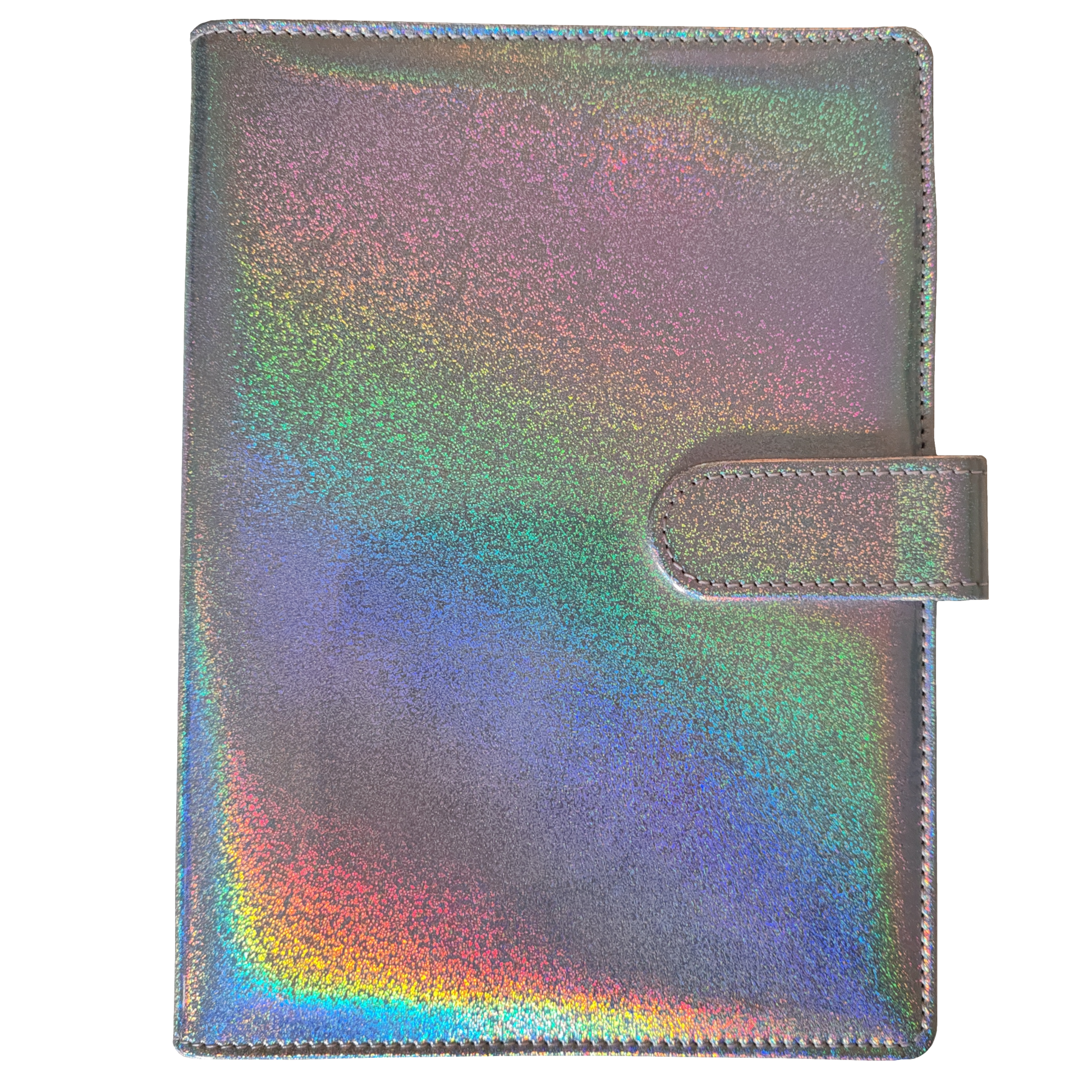 Material: Das Ringbuch besteht aus einem strapazierfähigen, holografischen Material, das nicht nur robust und pflegeleicht ist, sondern auch durch seine schimmernde Oberfläche beeindruckt. Der Glitter-Effekt reflektiert das Licht und schafft so ein dynamisches, lebendiges Aussehen.