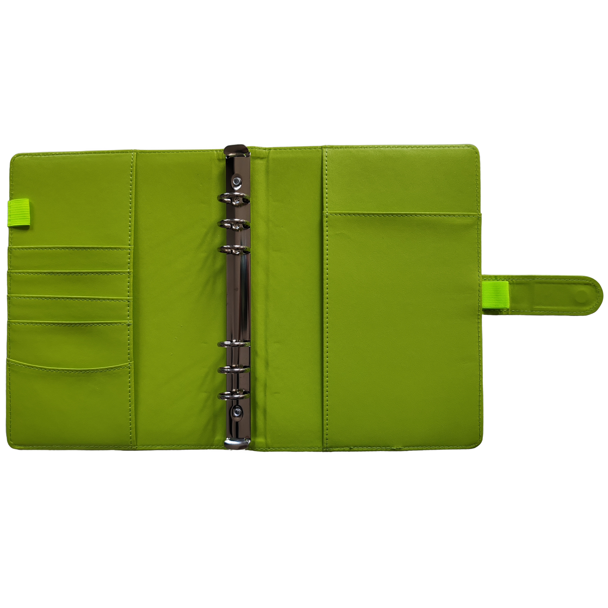 DIN A5 Ringbuch aus lime farbenem PU-Leder