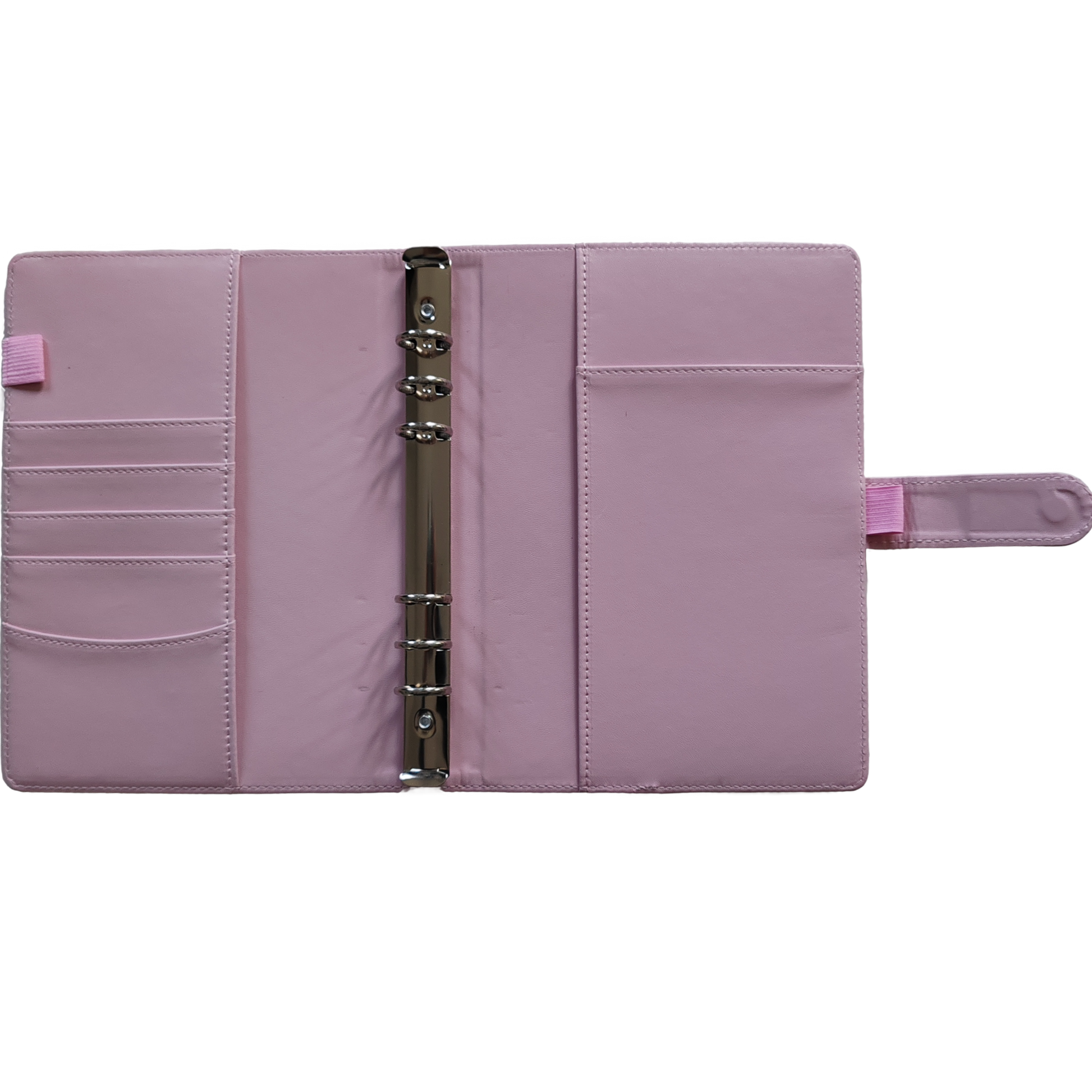 DIN A5 Ringbuch aus rosa farbenem PU-Leder