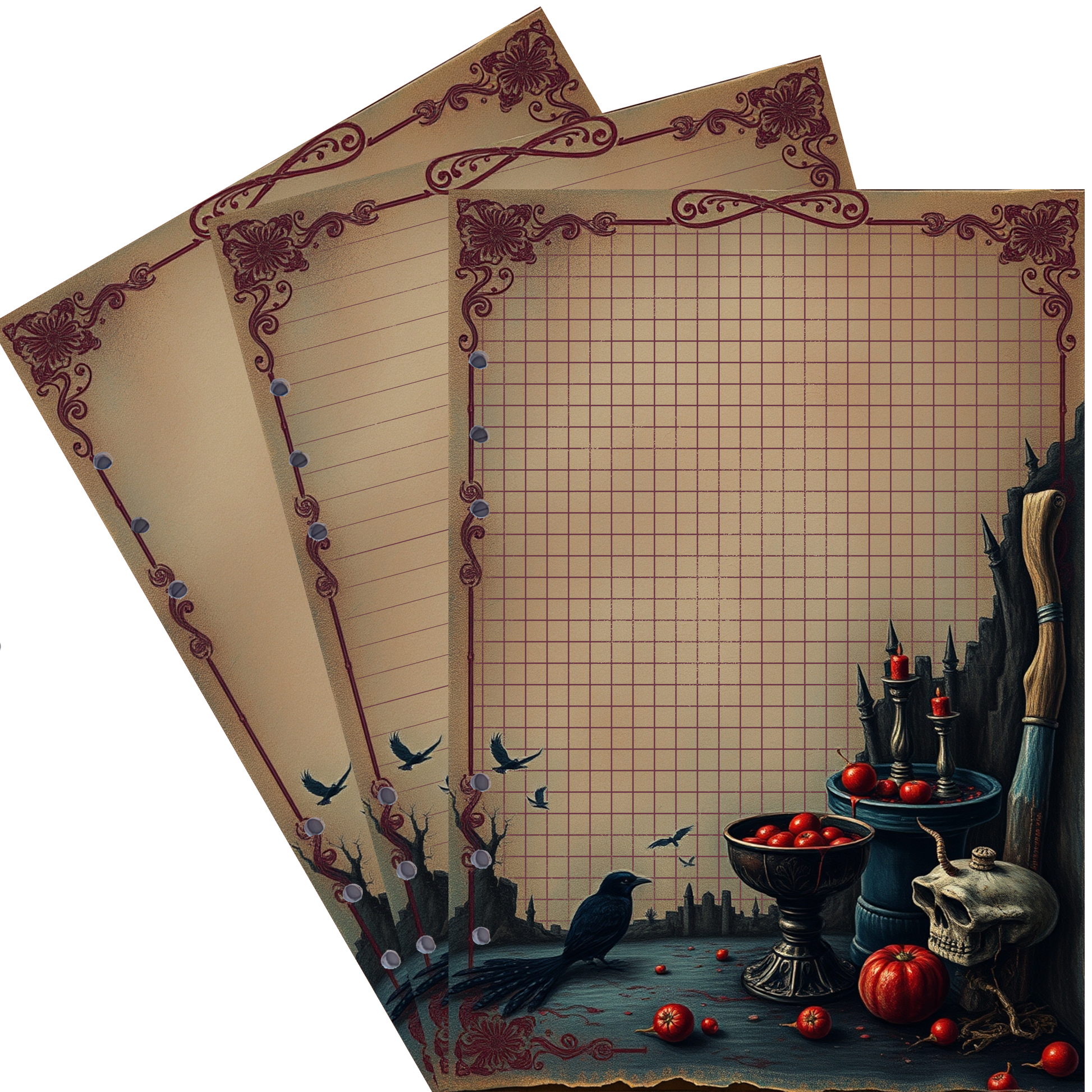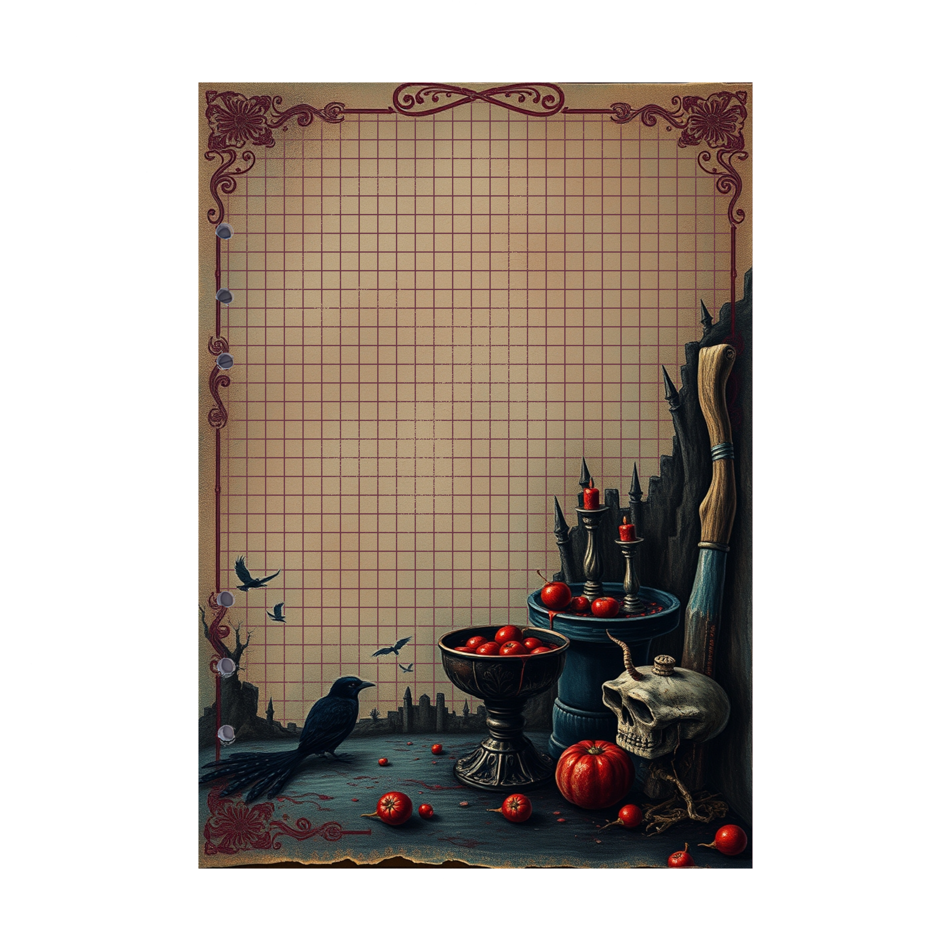 Vielseitige Motivauswahl: Das "Devil's Kitchen 10"-Design mit der Outdoor-Küche des Teufels, den frischen Zutaten und dem neugierigen Raben bringt eine spannende, abenteuerliche Atmosphäre in Ihre Notizen. Ideal für kreative Projekte, die eine Mischung aus Natur und teuflischer Magie benötigen.