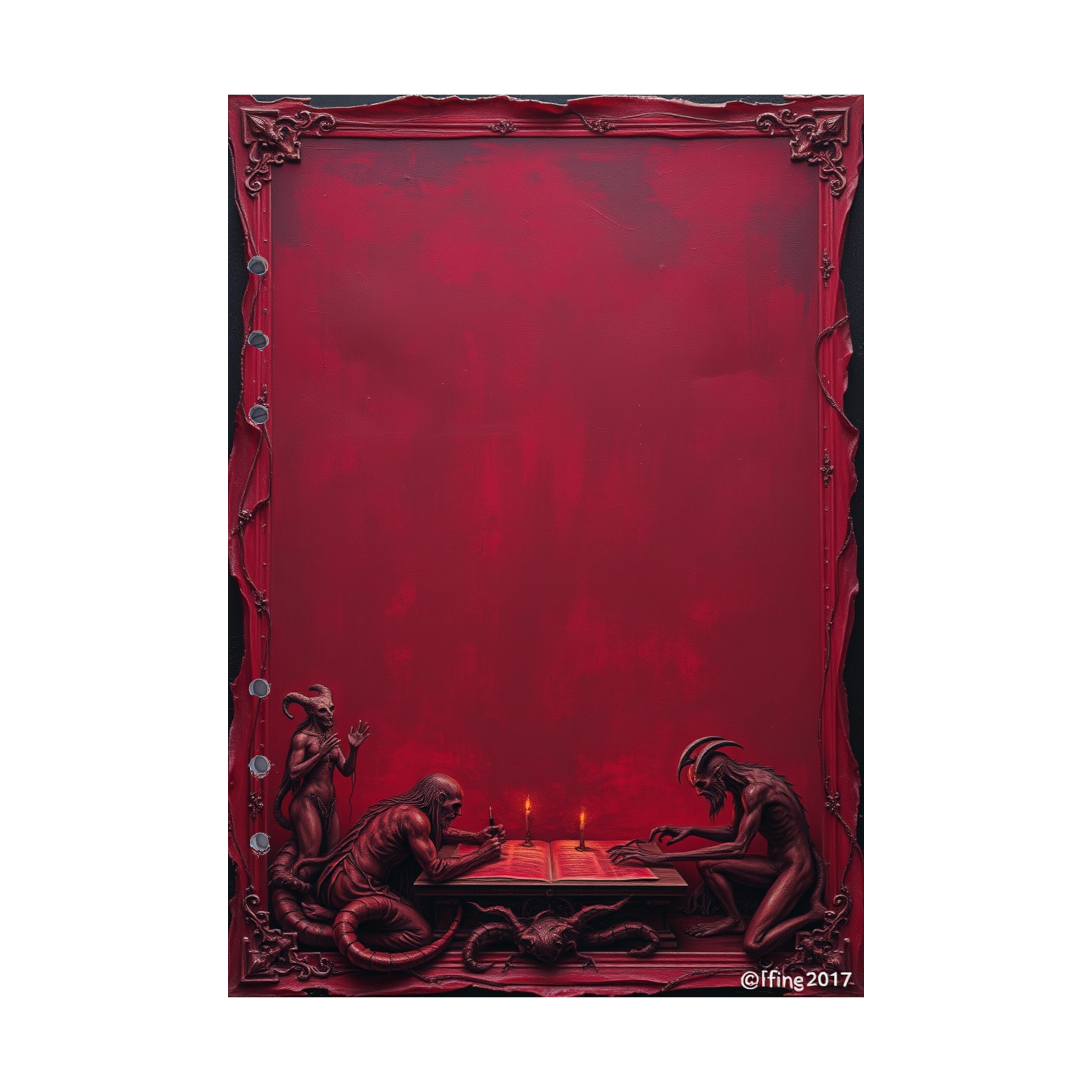 In der "Devil's Kitchen 15"-Ringbucheinlage geht es nach dem Mahl zur Sache! Der Teufel berät sich mit seinen zwei gehilfen über ihre nächsten teuflischen Pläne. In einem grellen, leuchtenden Pink, das die Energie und das Chaos ihrer finsteren Unterhaltungen widerspiegelt, ist dieses Design perfekt für all jene, die ihre kreativen Ideen, Projekte oder Notizen mit einer Portion Teufelsmagie und gewaltiger Dynamik anreichern möchten.