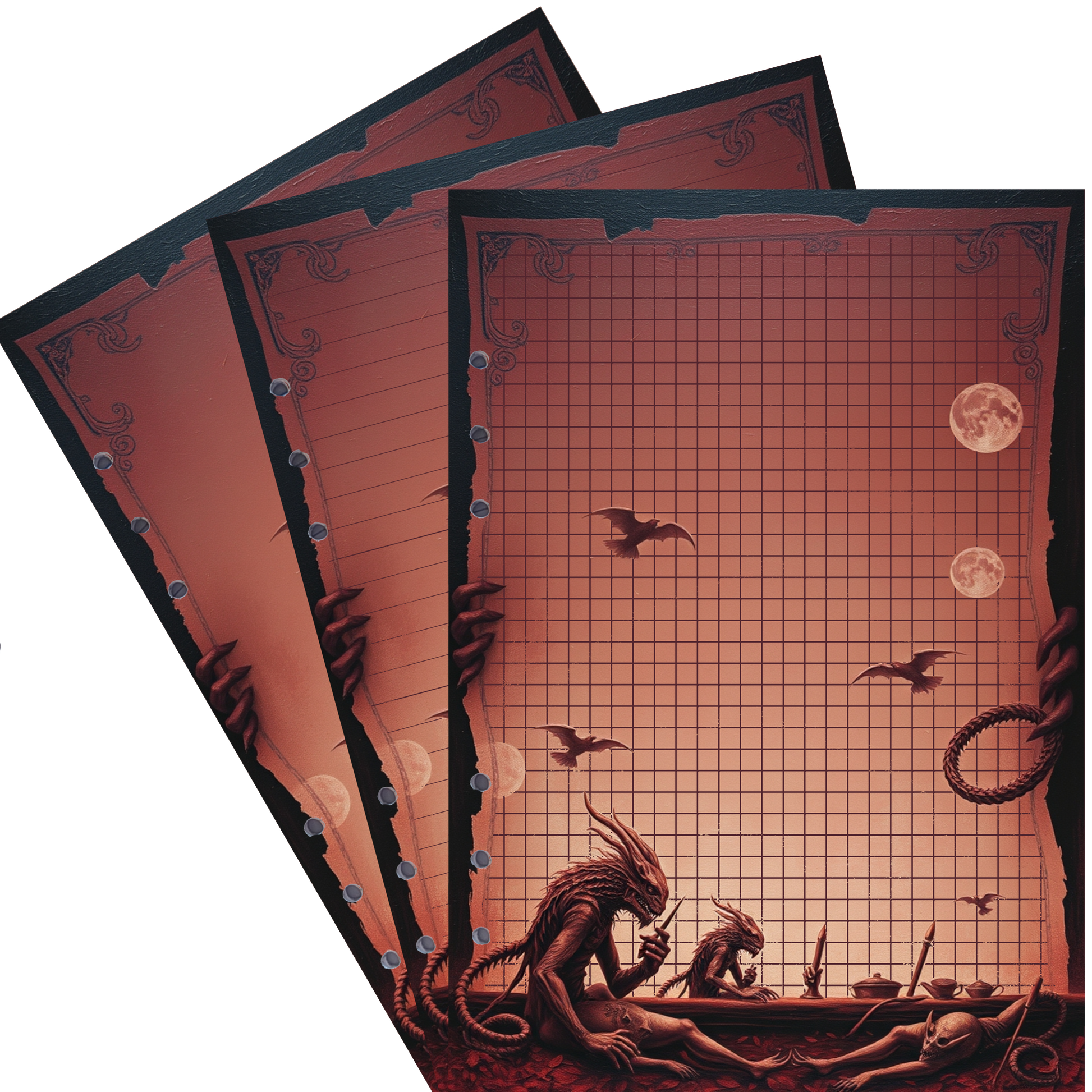 Vielseitige Anwendungsmöglichkeiten: Diese Nachfüllseiten eignen sich hervorragend für kreative Projekte, Notizen oder Skizzen, die von einer düsteren, magischen Stimmung inspiriert sind.