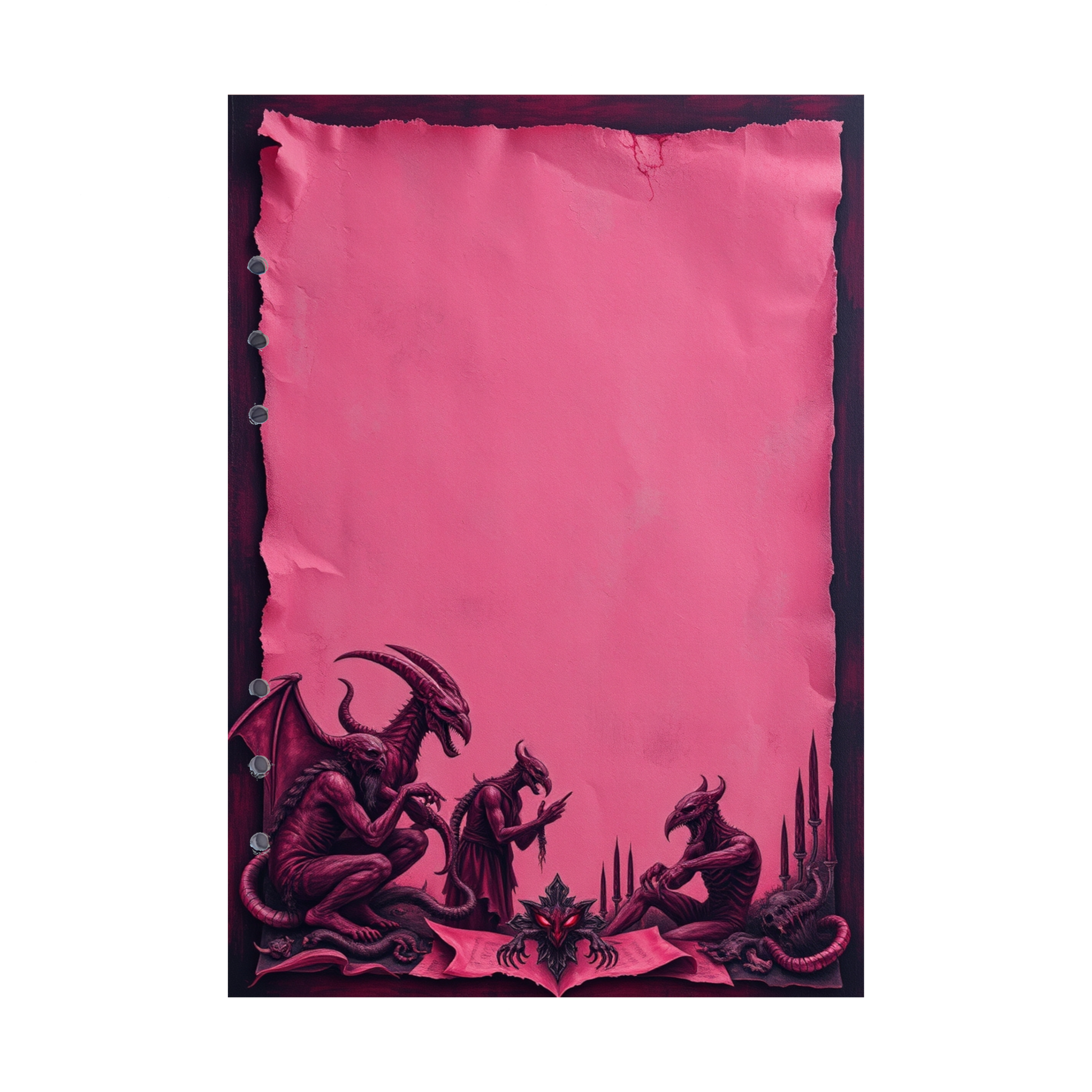Vielseitige Anwendungsmöglichkeiten: Diese Nachfüllseiten eignen sich hervorragend für kreative Projekte, Notizen oder Skizzen, die von einer intensiven, aber humorvollen Diskussion und teuflischem Chaos inspiriert sind.