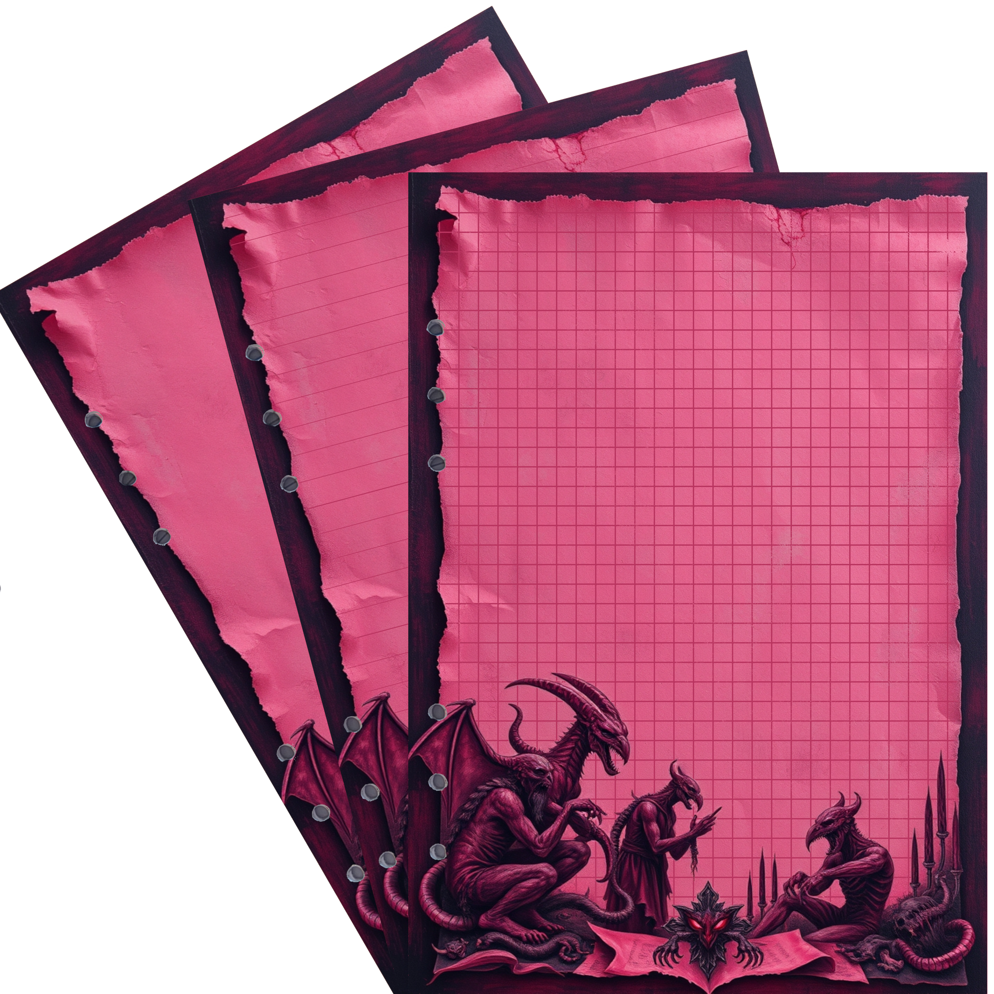 - Kreatives Design: Die hitzige Debatte zwischen den Unterweltwesen bringt eine dynamische und energiegeladene Atmosphäre in Ihre Notizen.