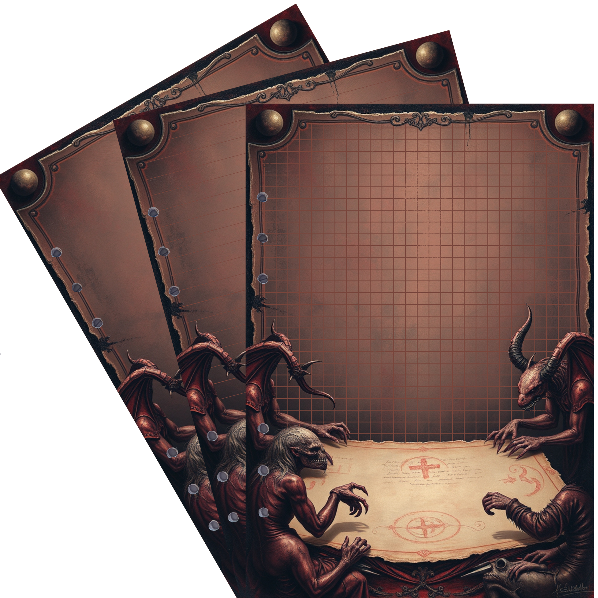 Vielseitige Anwendungsmöglichkeiten: Diese Nachfüllseiten eignen sich hervorragend für kreative Projekte, Notizen oder Skizzen, die von einem Moment des Wissens und der teuflischen Planung inspiriert sind.