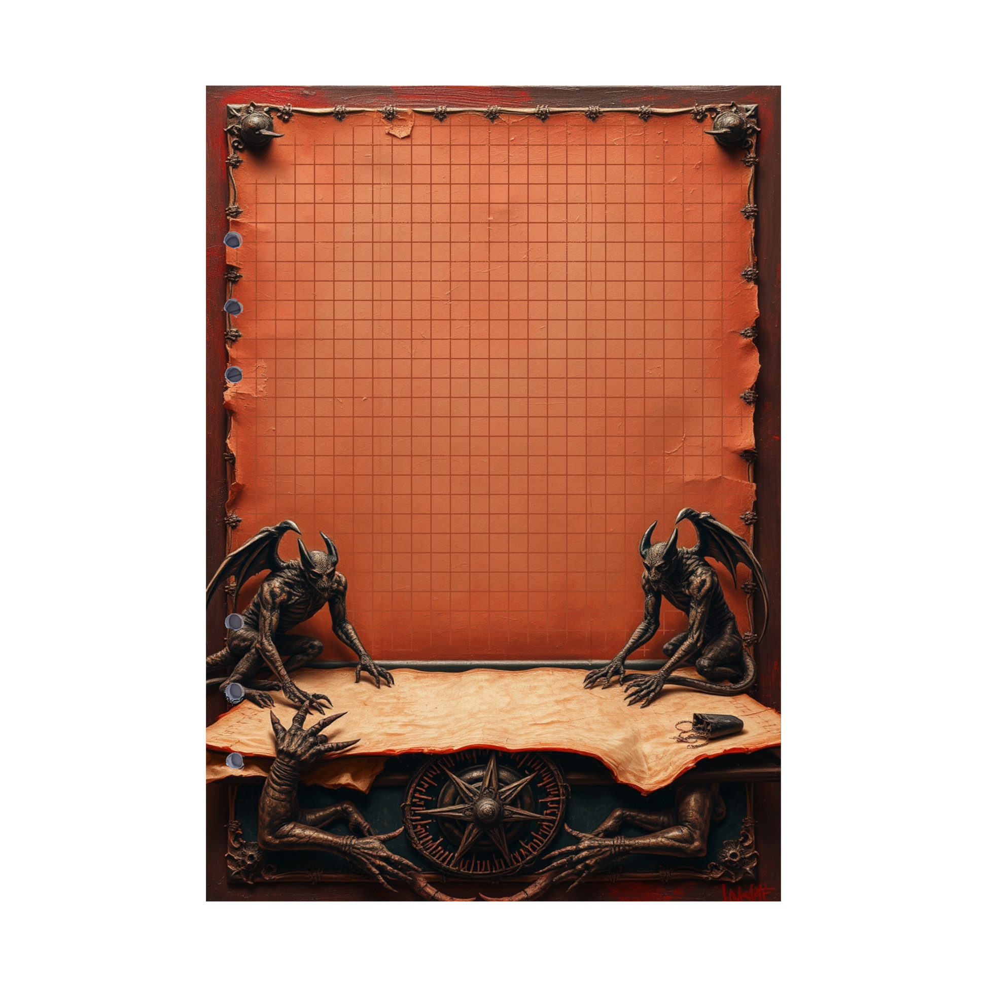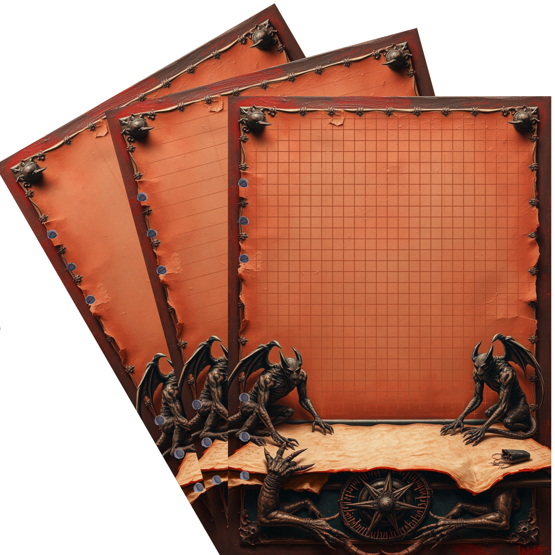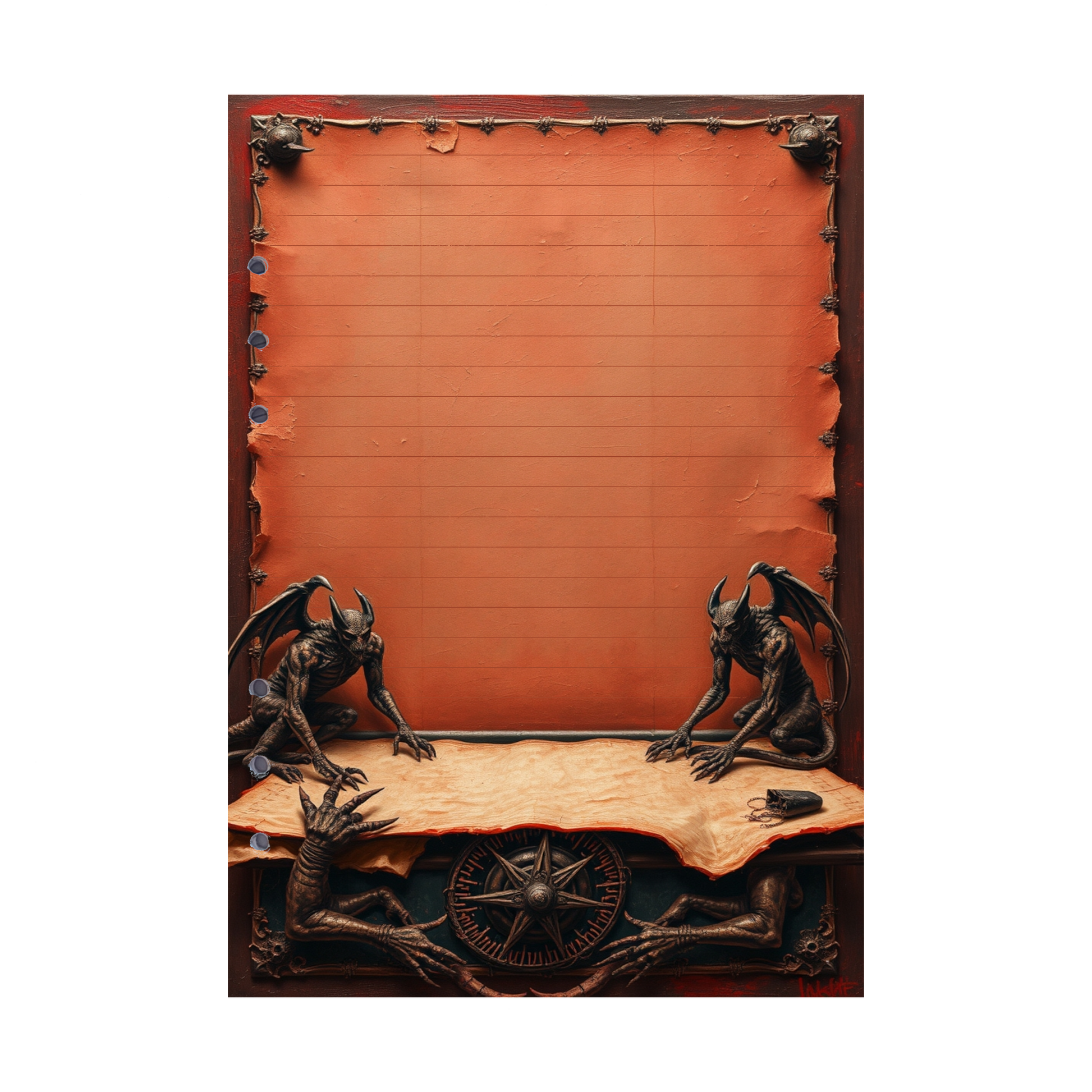 - Kreatives Design: Die Szene mit den geflügelten Kreaturen und ihrem sich selbst bewegenden Tisch bringt eine lebendige und teuflische Atmosphäre in Ihre Notizen.