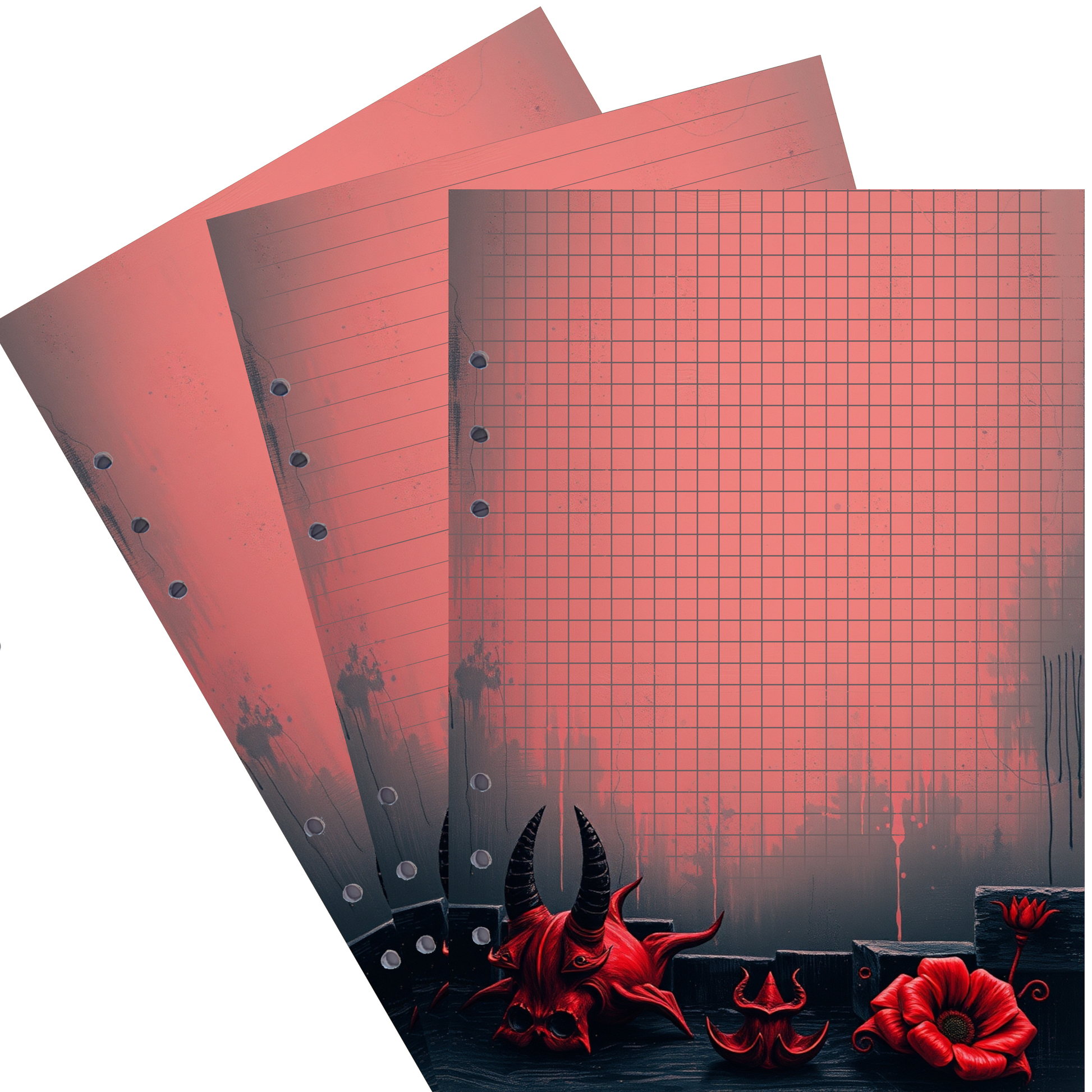 Vielseitige Anwendungsmöglichkeiten: Diese Nachfüllseiten eignen sich hervorragend für kreative Projekte, Notizen oder Skizzen, die von einer geheimnisvollen, leicht makaberen Stimmung inspiriert sind.