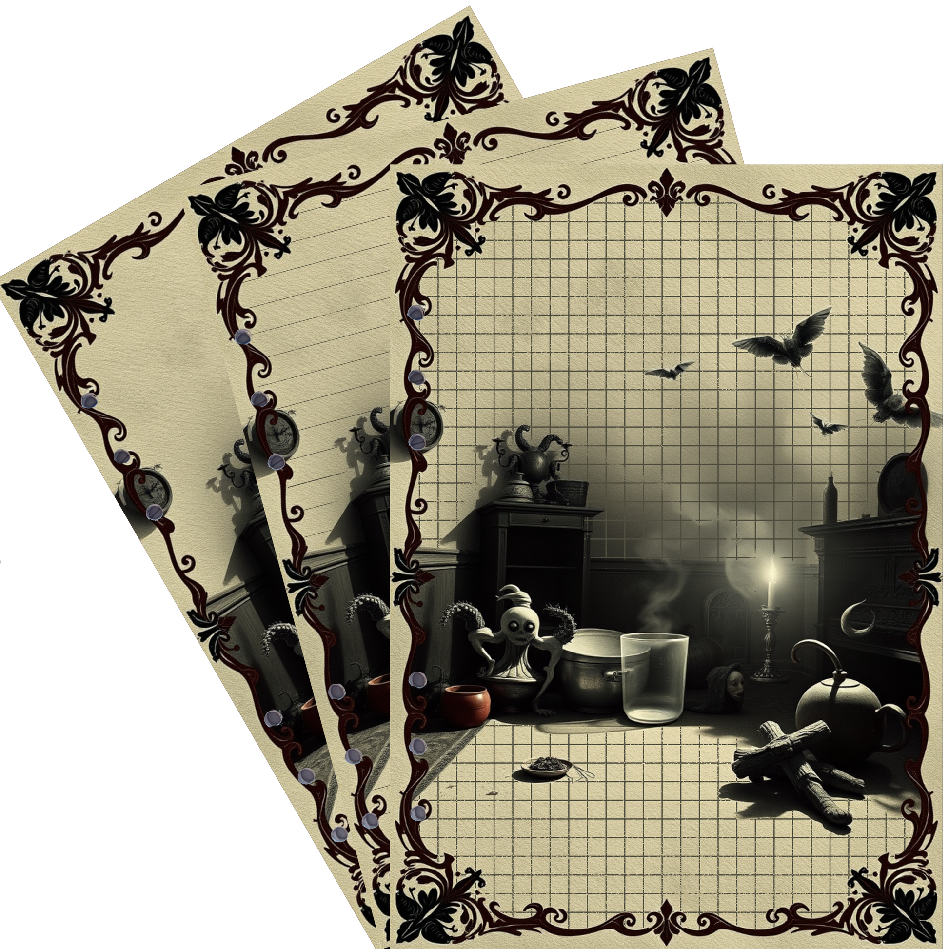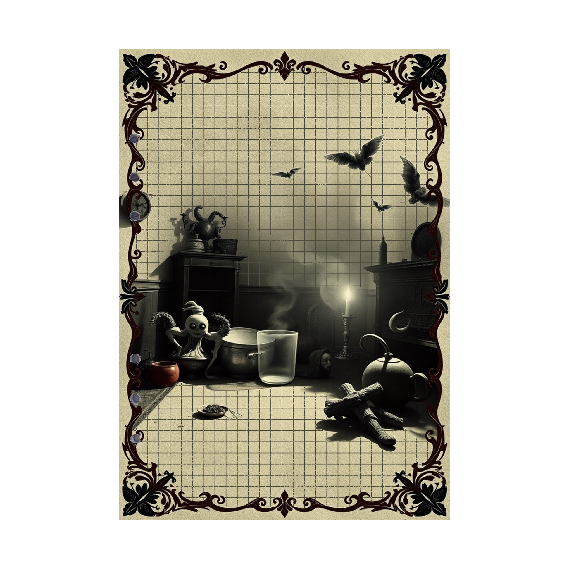 - Kreatives Design: Die chaotische Teufelsküche, in der sich Spielsachen und Kochutensilien vermischen, bringt eine lebendige, humorvolle und düstere Atmosphäre in Ihre Notizen.