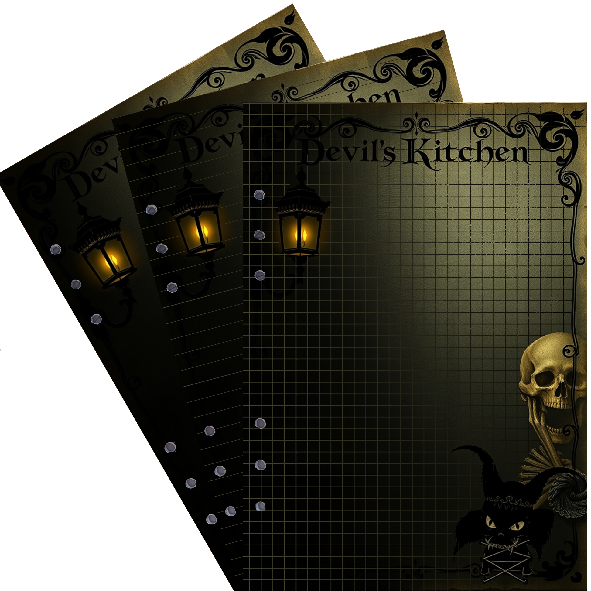 Vielseitige Anwendungsmöglichkeiten: Diese Nachfüllseiten eignen sich hervorragend für kreative Projekte, Notizen oder Skizzen, die von einer Mischung aus Teufelschaos, schaurigem Humor und mystischem Ambiente inspiriert sind.