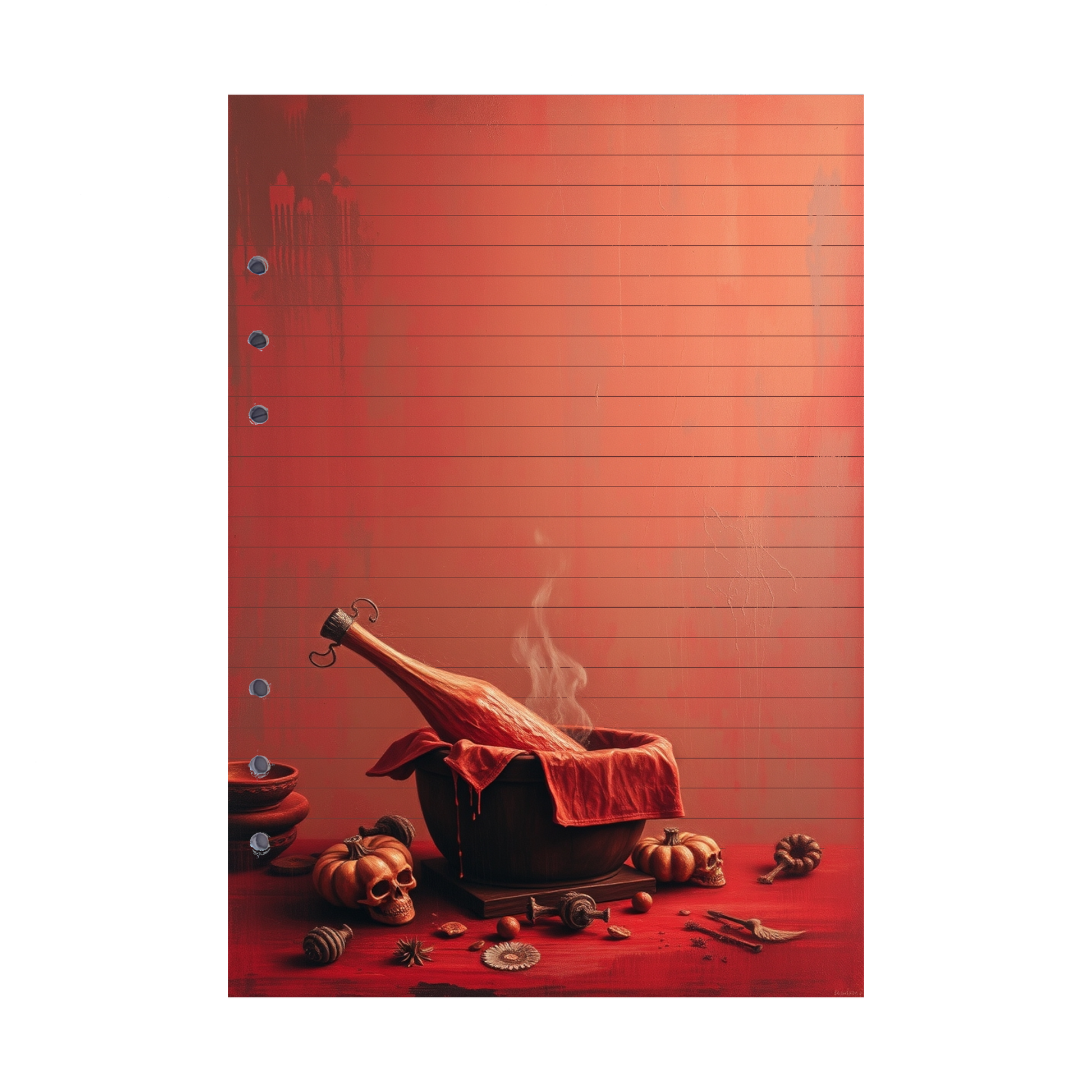 - Kreatives Design: Die romantische Dinner-Vorbereitung des Teufels mit seinen perfekt arrangierten Zutaten verleiht Ihren Notizen eine stilvolle und geheimnisvolle Note.