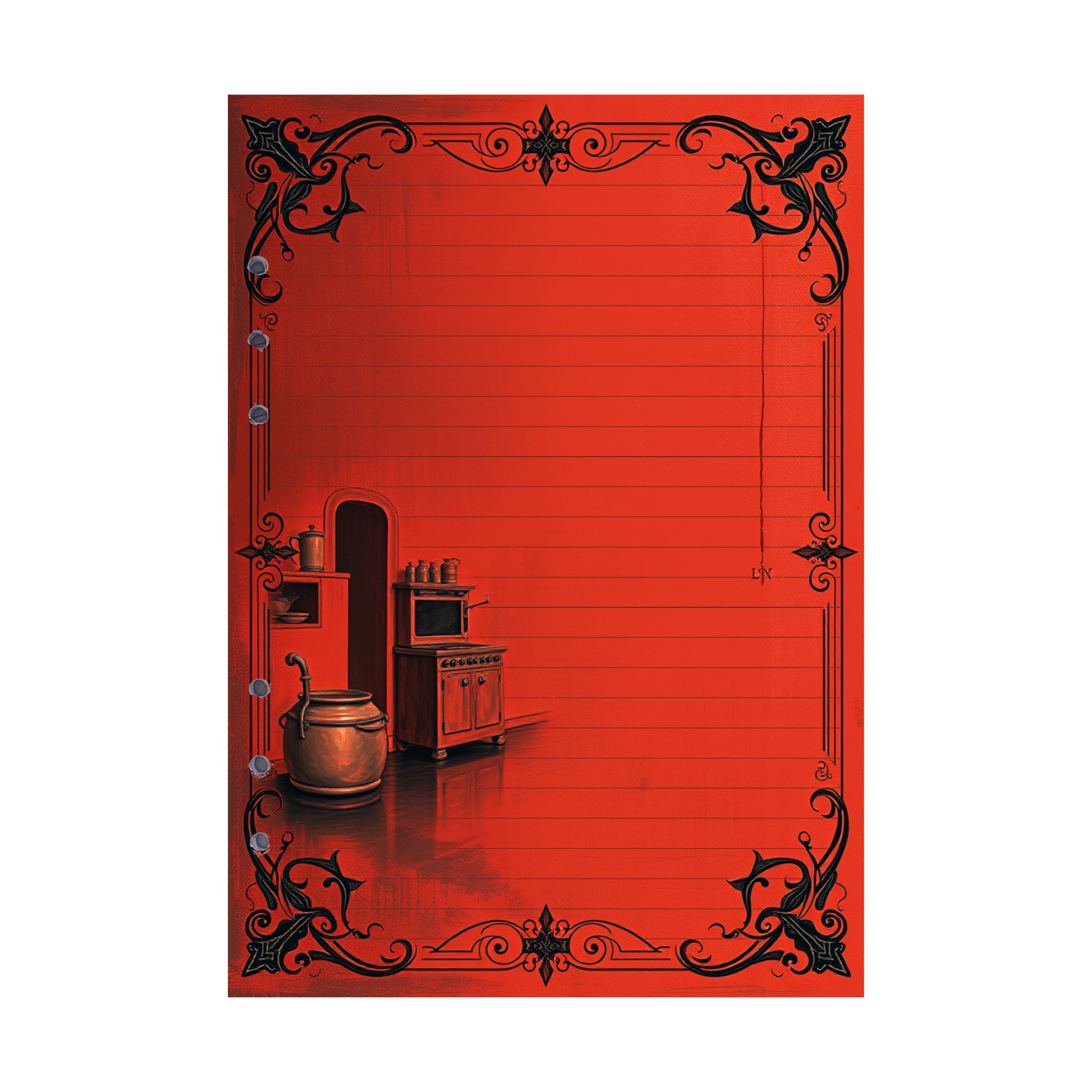 - Kreatives Design: Die feuerrote Küche mit dem Küchenschrank und Kupferkessel sorgt für eine lebendige und mystische Atmosphäre, die Ihre Notizen mit einem einzigartigen Charme bereichert.
