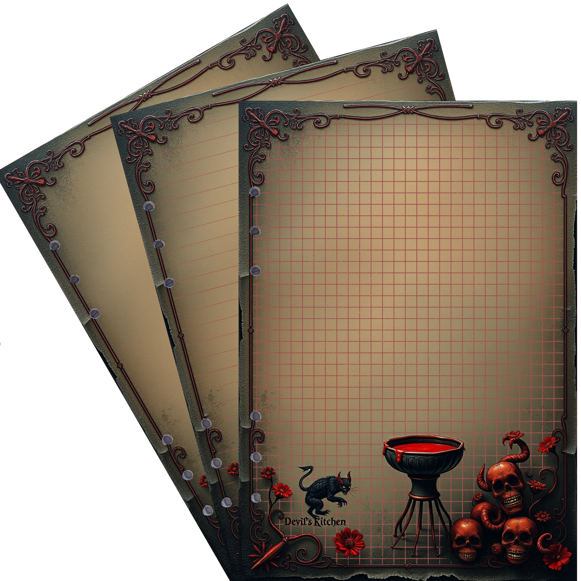Vielseitige Anwendungsmöglichkeiten: Diese Nachfüllseiten eignen sich für düstere, kreative Projekte, Notizen oder Skizzen, die von einer geheimnisvollen und teuflischen Stimmung begleitet werden sollen.