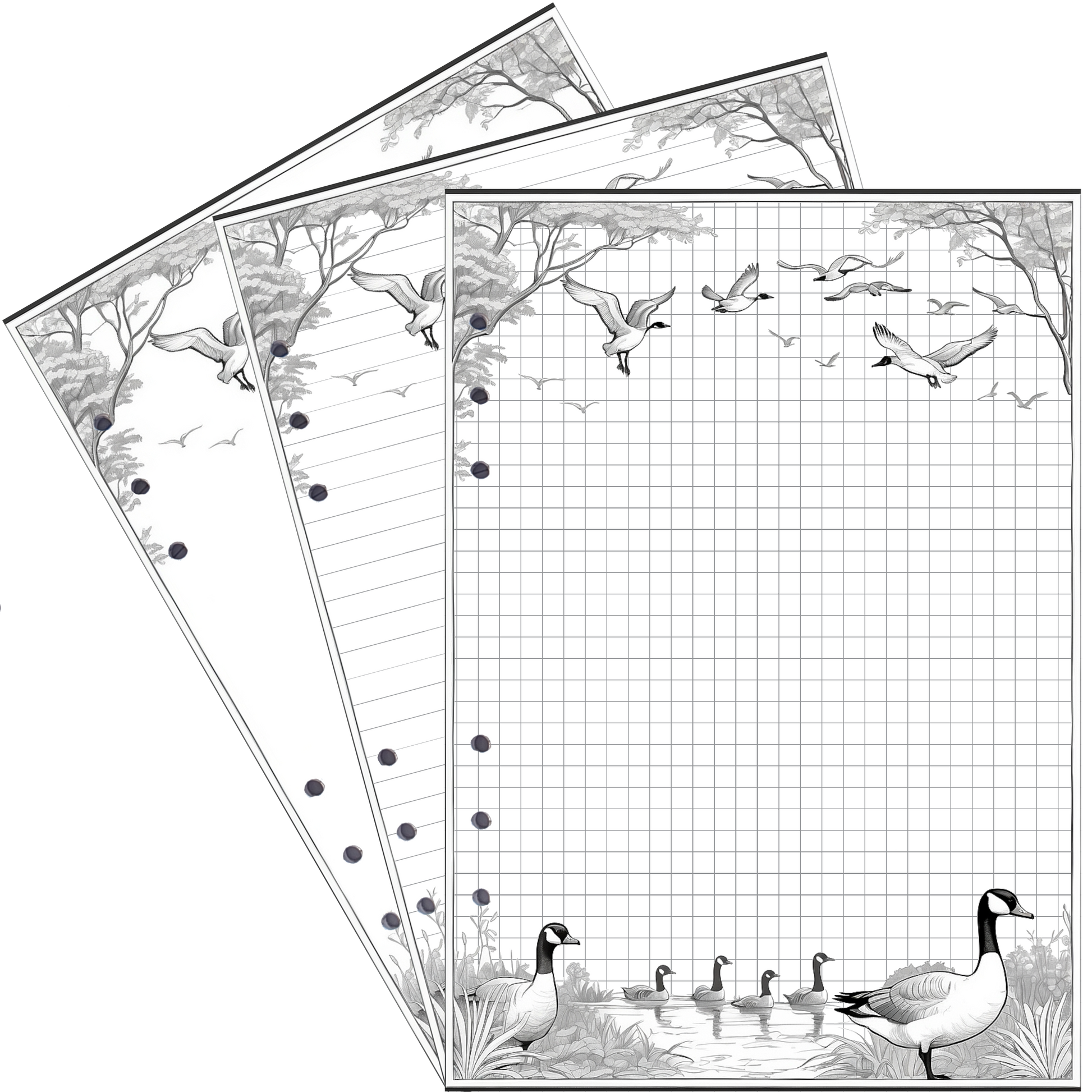Tauchen Sie ein in die friedliche Welt unserer DIN A5 Nachfüllseiten im entzückenden "Gans 1"-Design. Die Gans, Symbol für Gemeinschaft und Loyalität, verleiht Ihren Notizen eine besondere Wärme und inspiriert zu kreativen Ideen und Projekten.