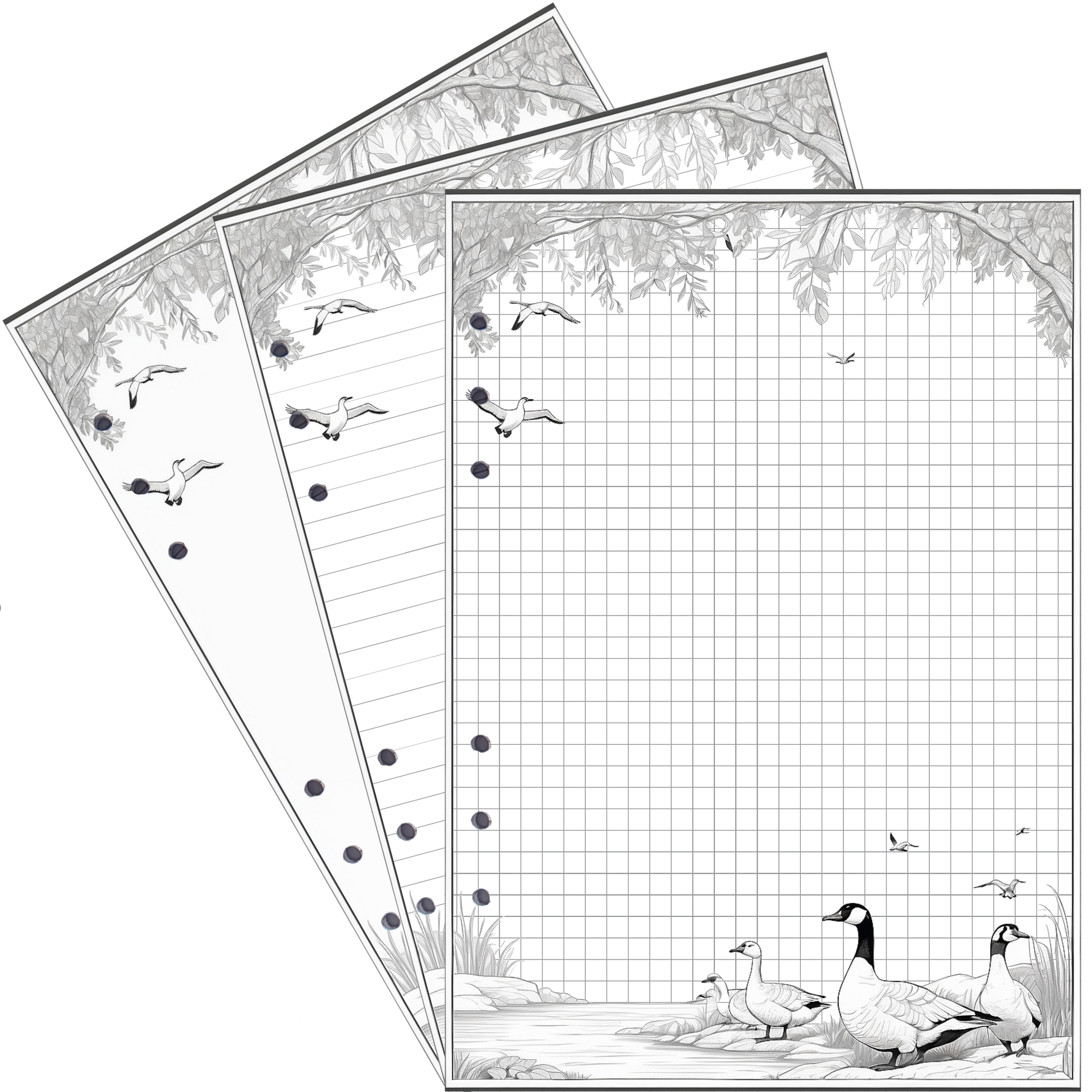 Tauchen Sie ein in die friedliche Welt unserer DIN A5 Nachfüllseiten im entzückenden "Gans 2"-Design. Die Gans, Symbol für Gemeinschaft und Loyalität, verleiht Ihren Notizen eine besondere Wärme und inspiriert zu kreativen Ideen und Projekten.