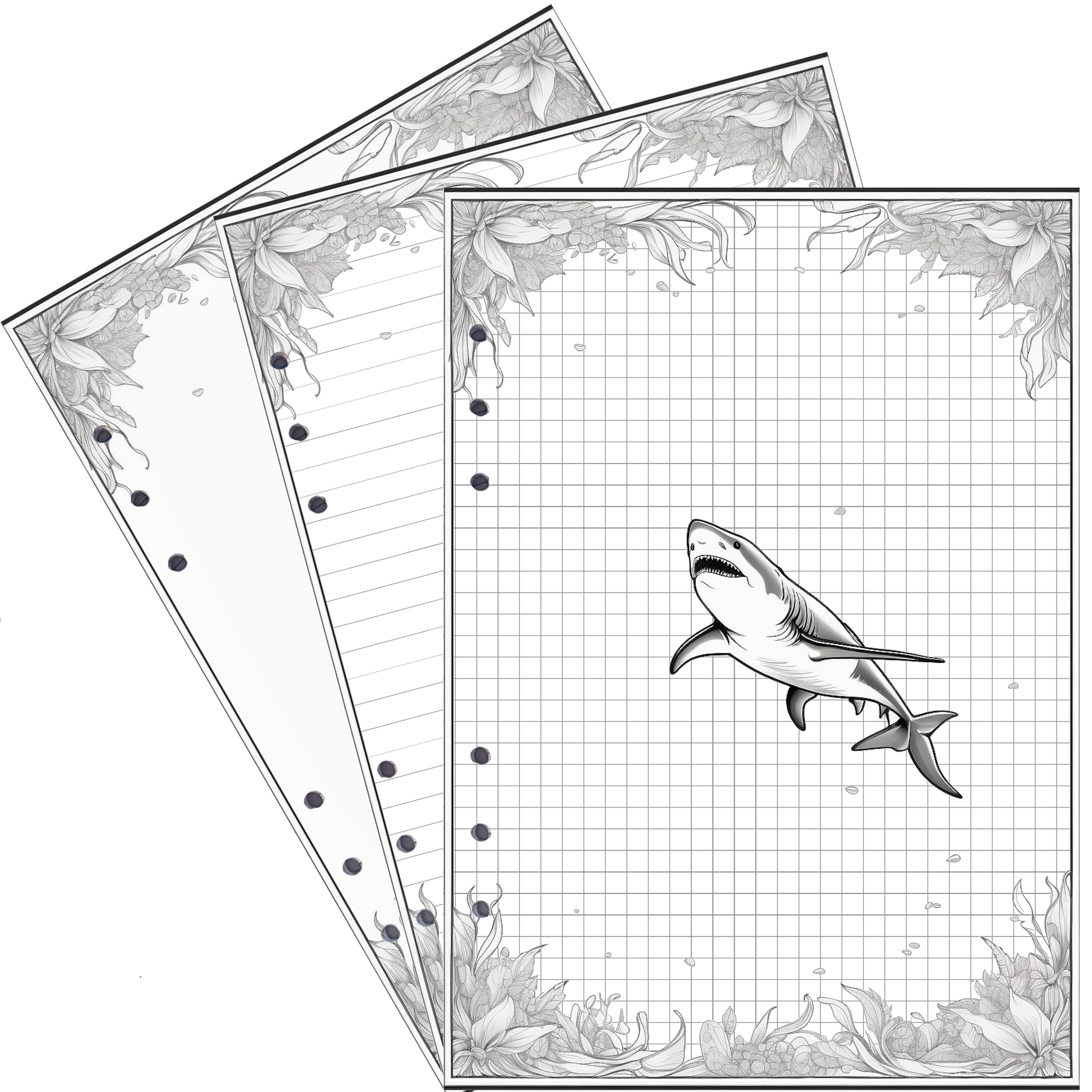 Tauchen Sie ein in die faszinierende Welt unserer DIN A5 Nachfüllseiten im beeindruckenden "Hai 1"-Design. Der Hai, Symbol für Stärke und Entschlossenheit, verleiht Ihren Notizen eine besondere Kraft und inspiriert zu neuen Ideen und kreativen Entdeckungen.