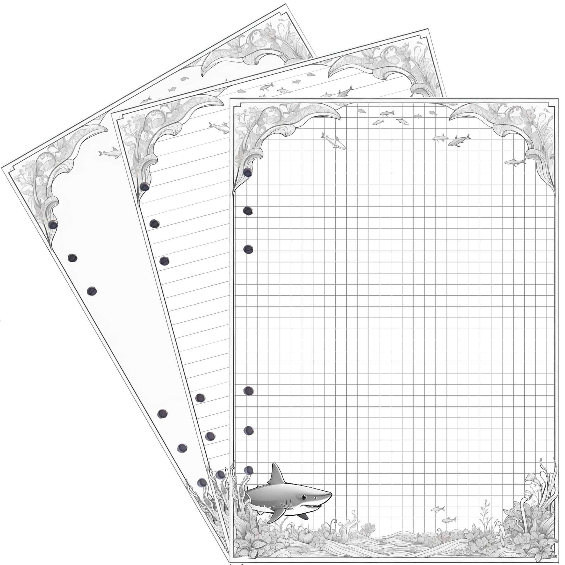 Entdecken Sie die fesselnde Welt unserer DIN A5 Nachfüllseiten im beeindruckenden "Hai 3"-Design. Der Hai, Symbol für Stärke und Eleganz, verleiht Ihren Notizen eine besondere Ausdruckskraft und inspiriert zu neuen Ideen und kreativen Entdeckungen.