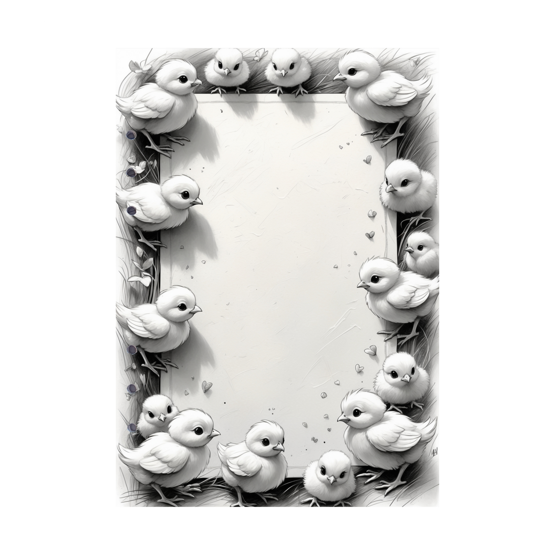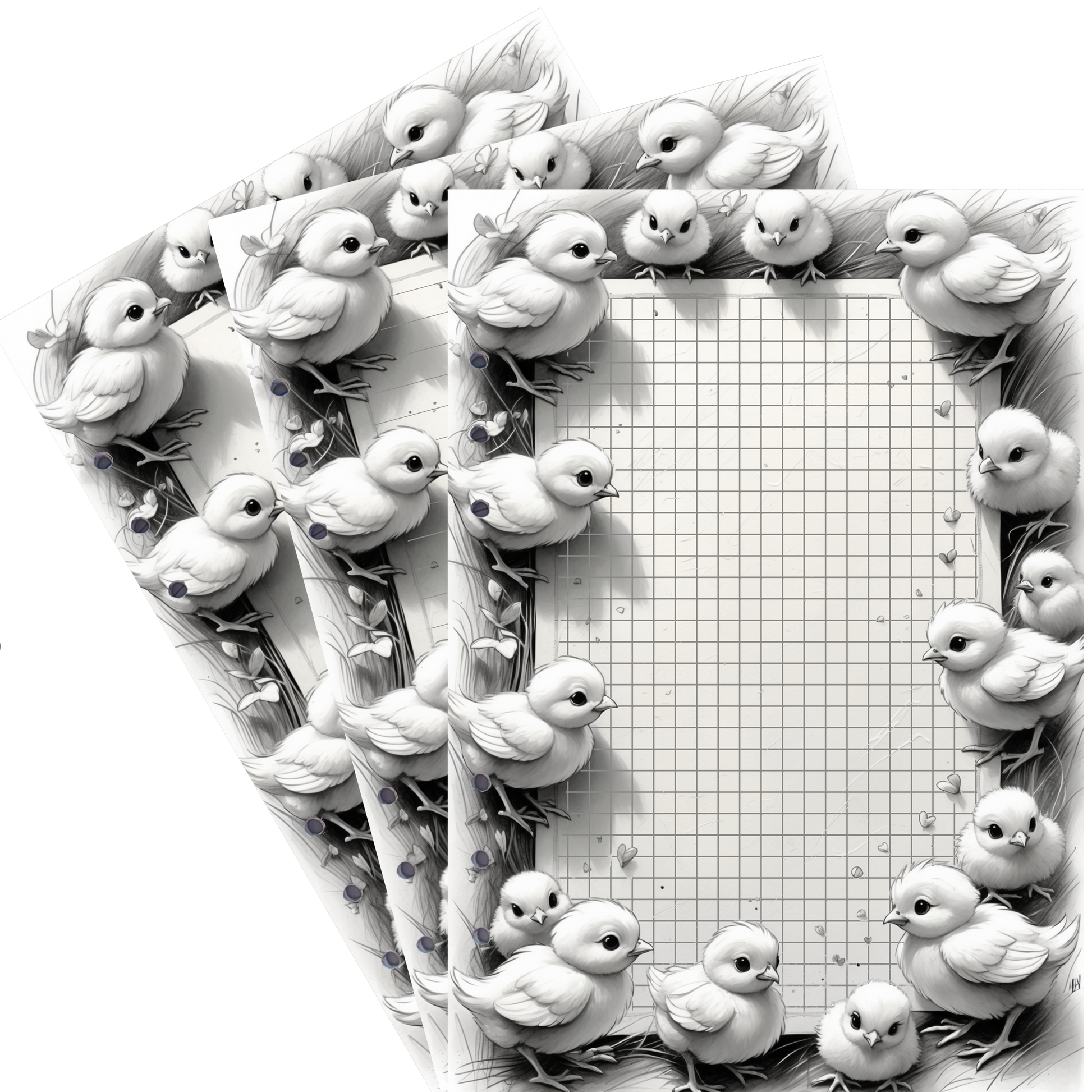 Verleihen Sie Ihren Notizen einen fröhlichen Oster-Touch mit unseren DIN A5 Ringbucheinlagen im "Happy Easter 1"-Design. Niedliche weiße Küken rahmen das Blatt liebevoll ein und bringen eine heitere, fröhliche Stimmung in Ihr Ringbuch. Perfekt, um Ihre kreativen Ideen und Erinnerungen in einem charmanten Oster-Look festzuhalten.