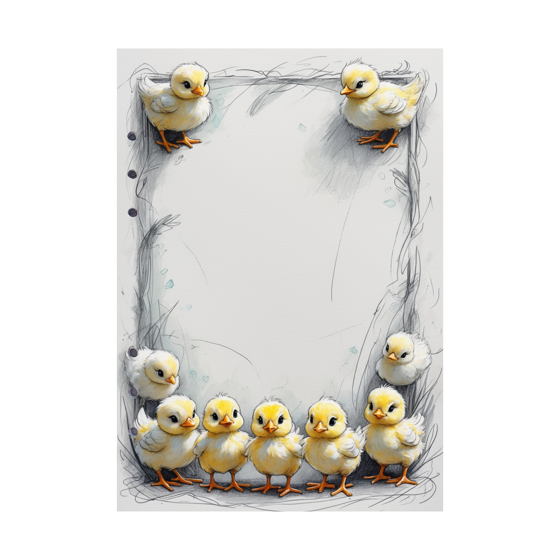 Verspieltes Design: Die süßen gelben Küken auf dem weißen Hintergrund bringen Osterfreude in Ihre Notizen.