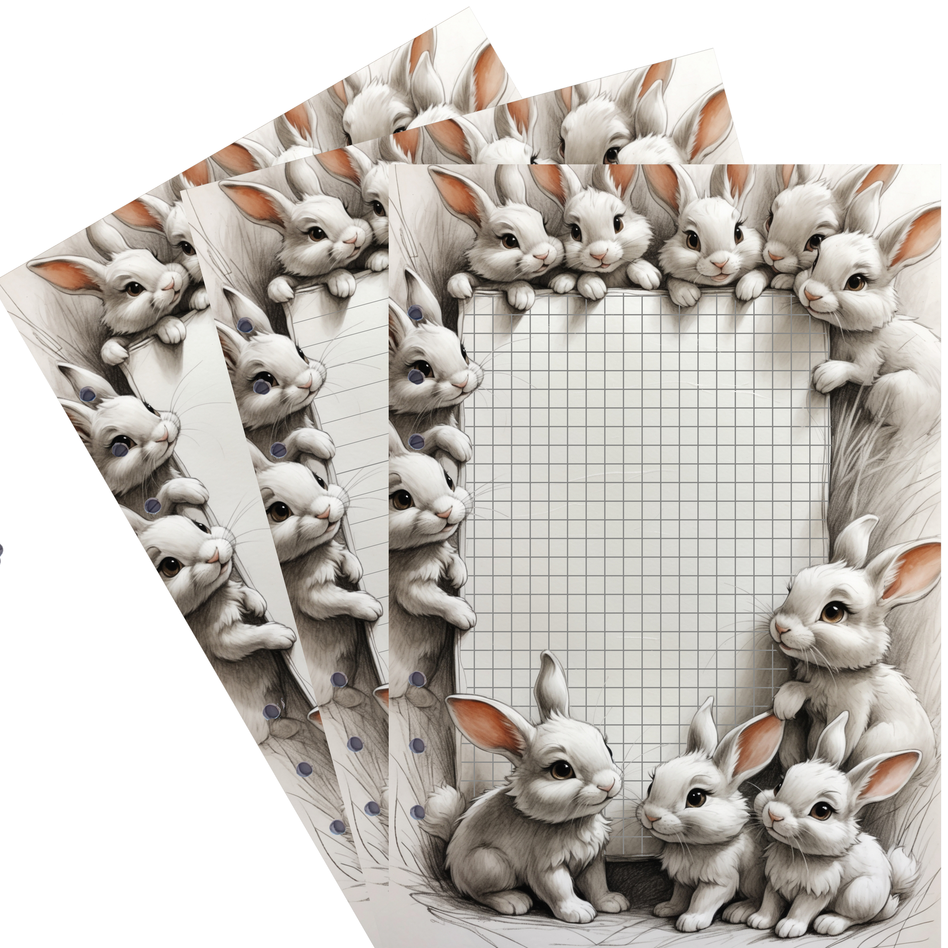 Gestalten Sie Ihre Notizen im verspielten Oster-Look mit unseren DIN A5 Ringbucheinlagen im "Happy Easter 13"-Design! Dieses liebevolle Motiv wird von vielen niedlichen weißen Häschen umrahmt, die die Schreibfläche sanft einfangen und für eine fröhliche Osterstimmung sorgen. Perfekt für kreative Ideen, Planungen oder besondere Erinnerungen.