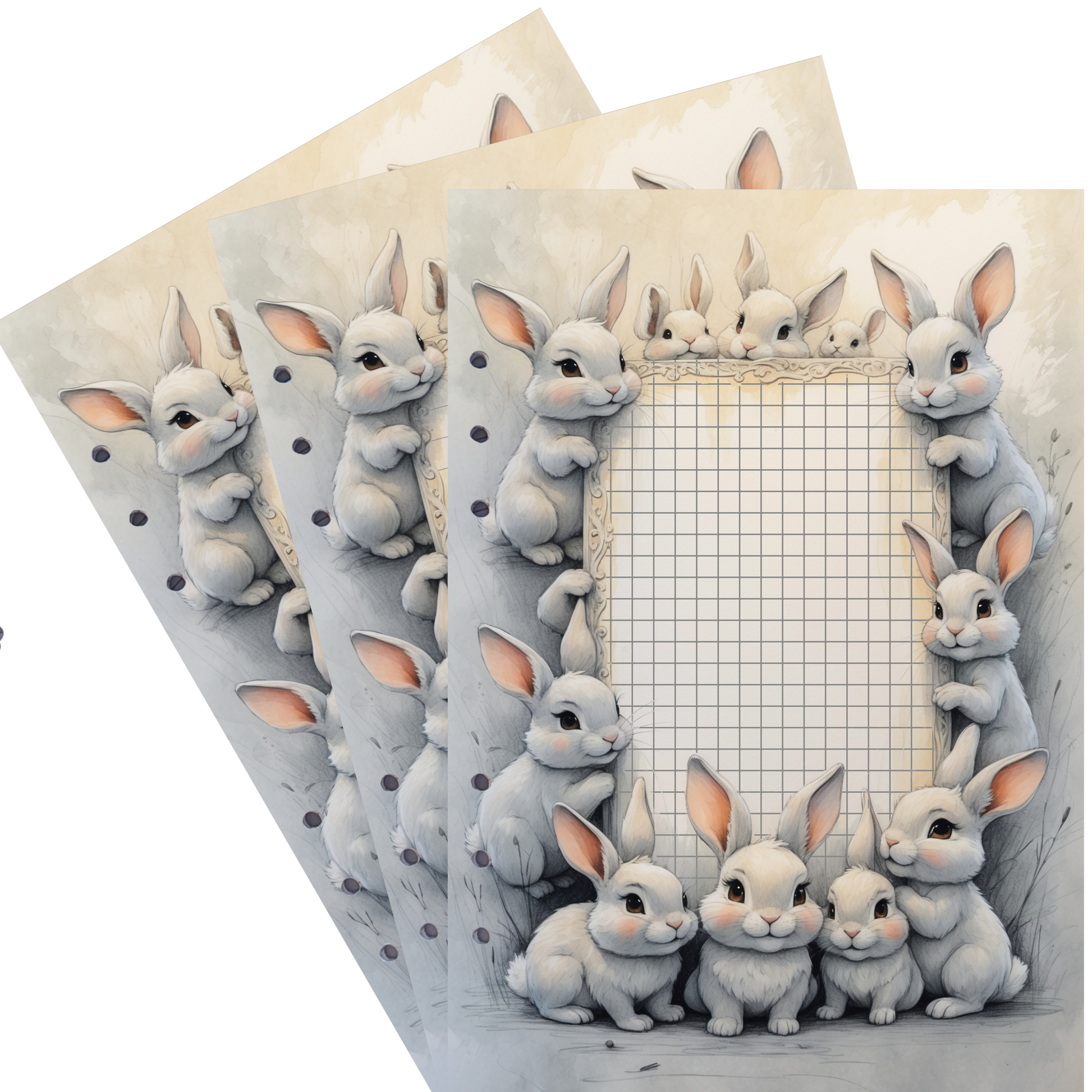 Verleihen Sie Ihren Notizen eine charmante Oster-Atmosphäre mit unseren DIN A5 Ringbucheinlagen im "Happy Easter 21"-Design! Dieses entzückende Design zeigt viele weiße Hasen, die sich auf einem sanften cremefarbenen Hintergrund tummeln. Die Hasen sorgen für eine fröhliche und zugleich elegante Osterstimmung und lassen gleichzeitig genug Platz für Ihre kreativen Gedanken und Erinnerungen.