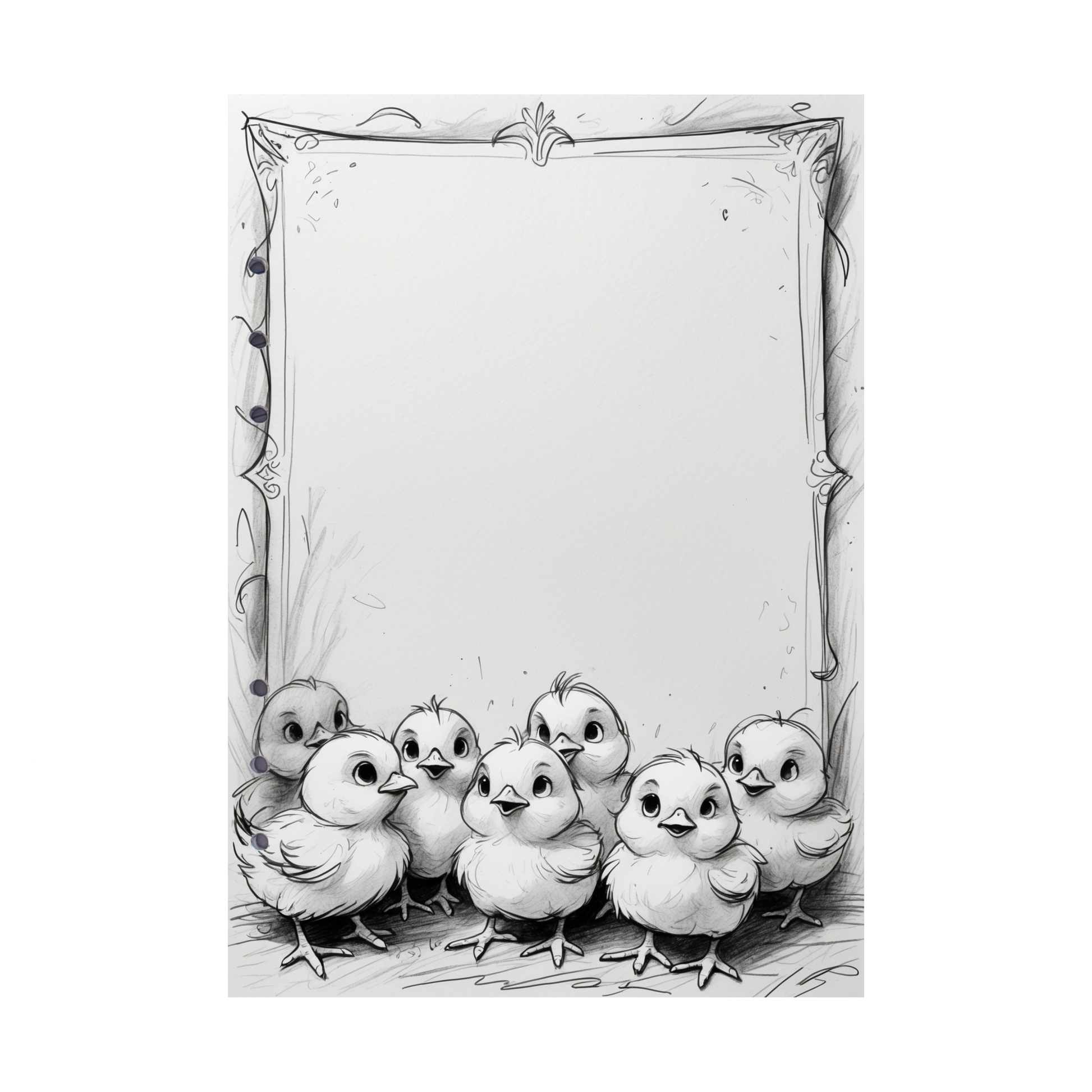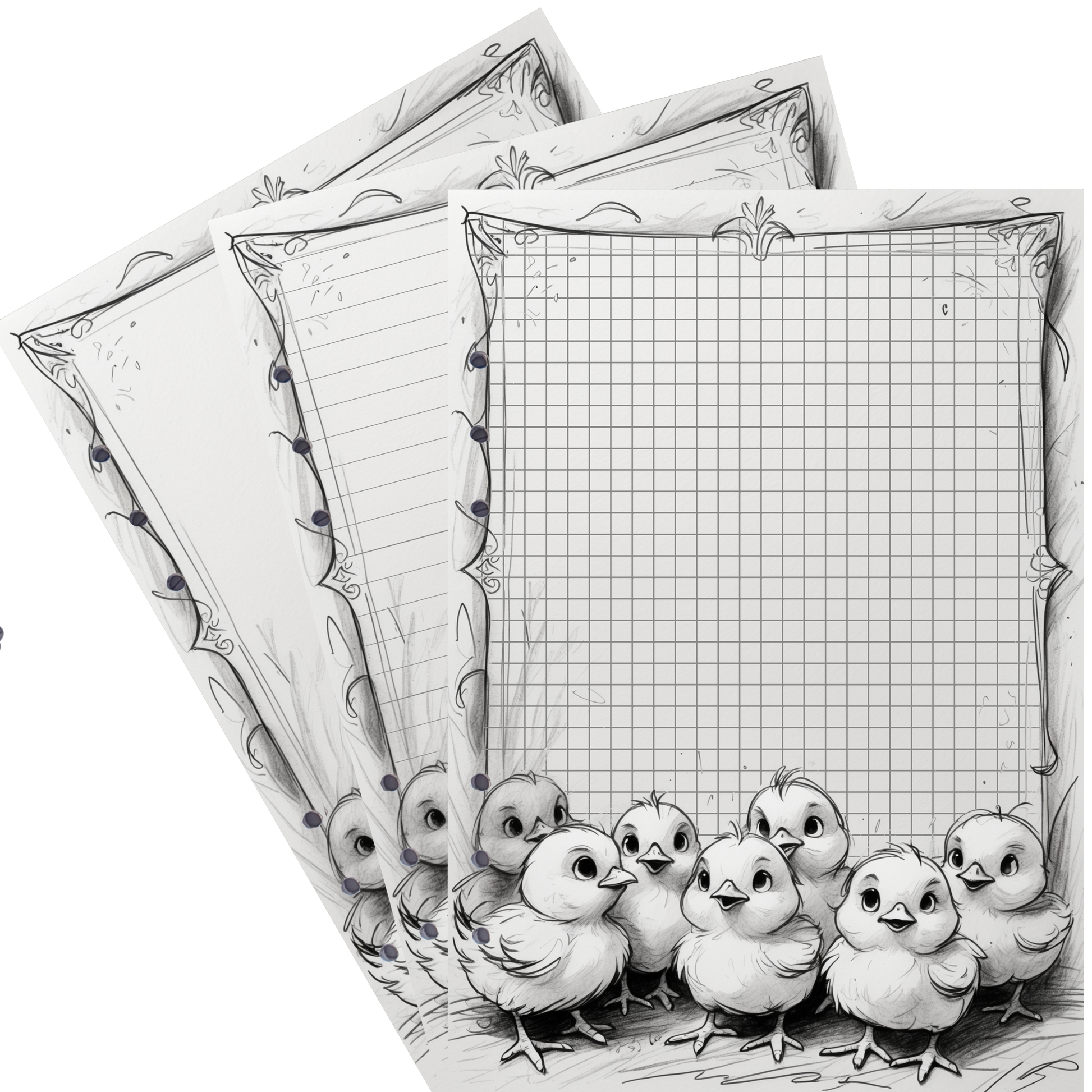 Fröhliches Design: Die sechs großen weißen Küken am unteren Rand bringen eine verspielte und festliche Osterstimmung in Ihre Notizen.