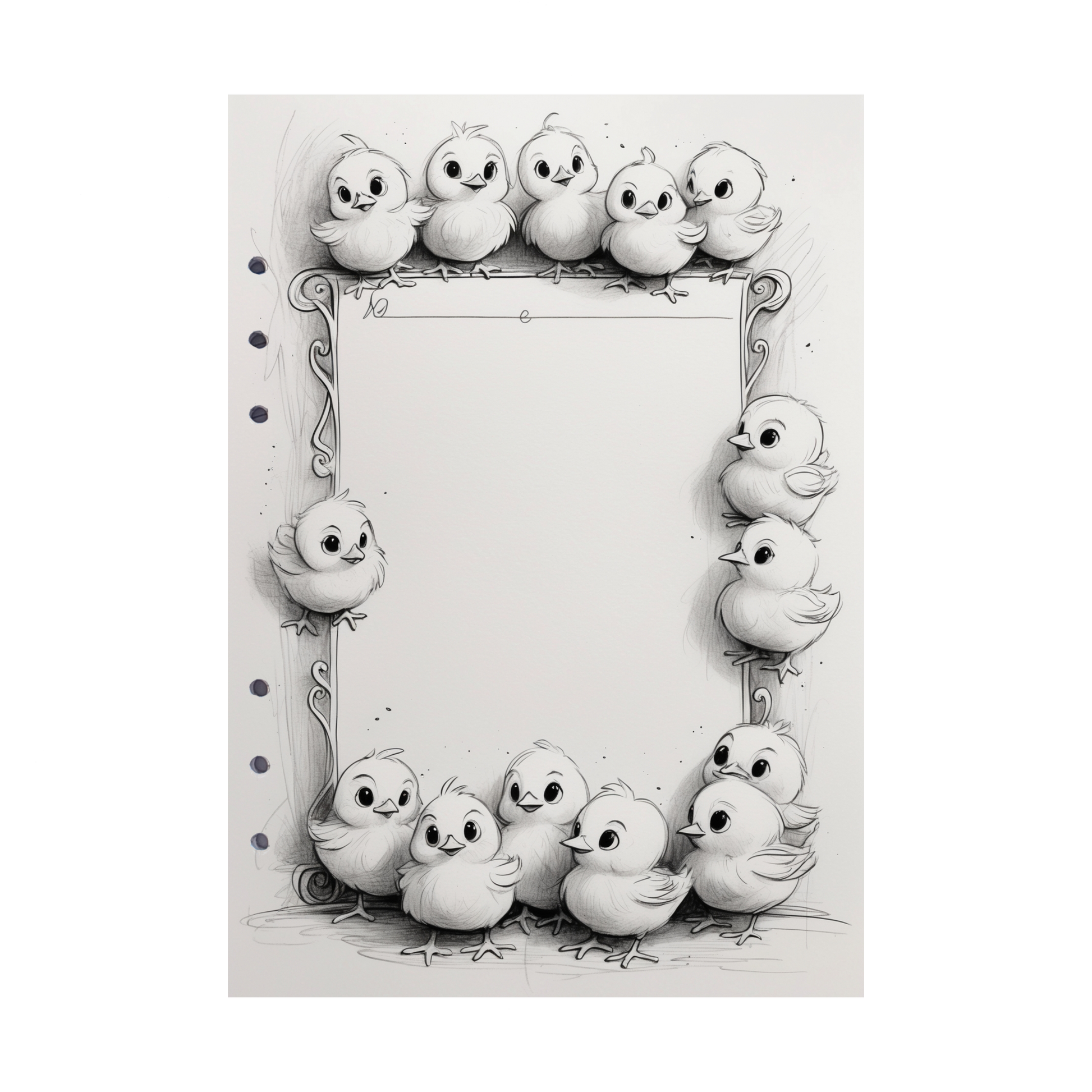 Fröhliches Design: Die vielen kleinen weißen Küken, die die Seite umrahmen, sorgen für eine verspielte und festliche Osterstimmung.