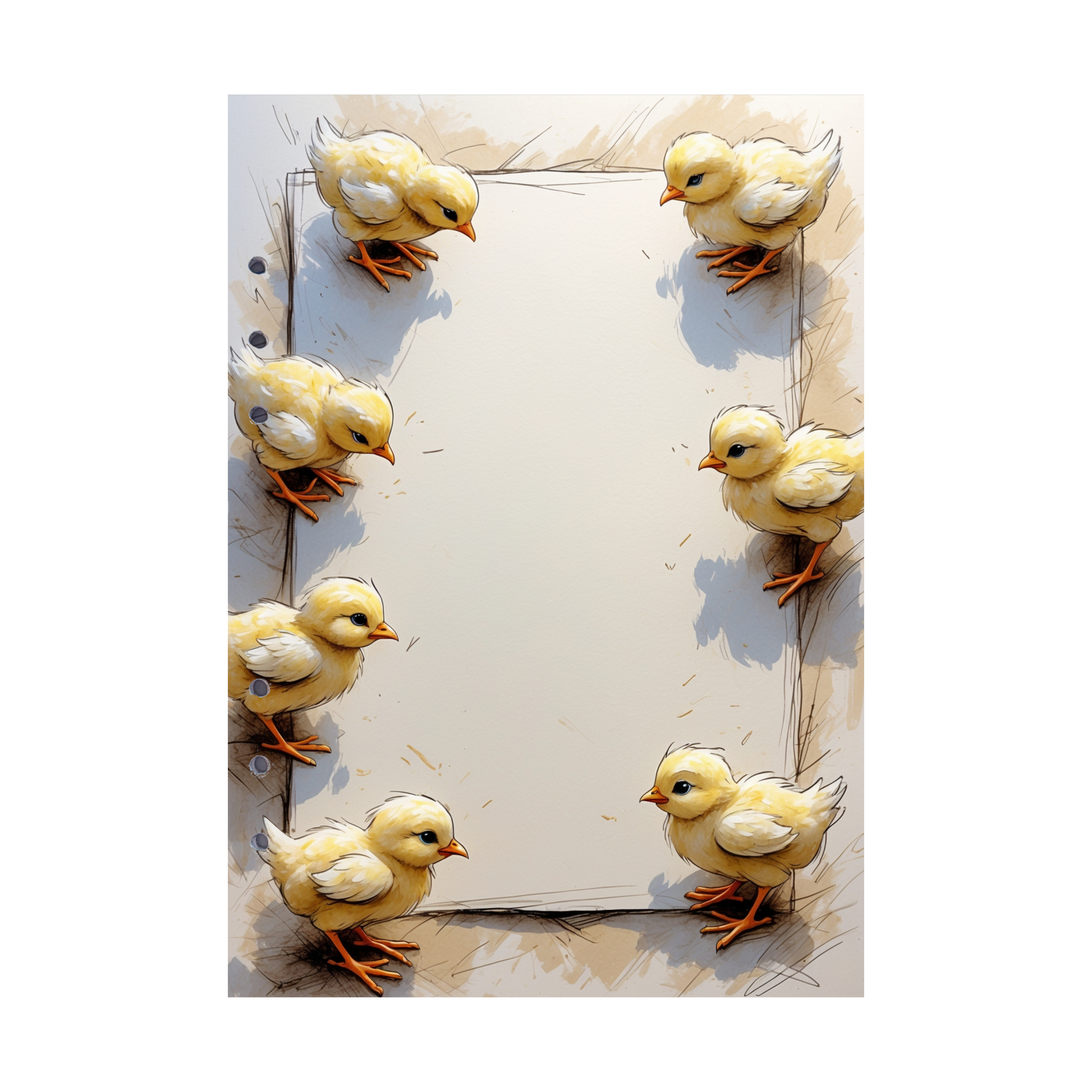 Fröhliches Design: Die sieben gelben Küken bringen eine lebendige und festliche Osterstimmung in Ihre Notizen.