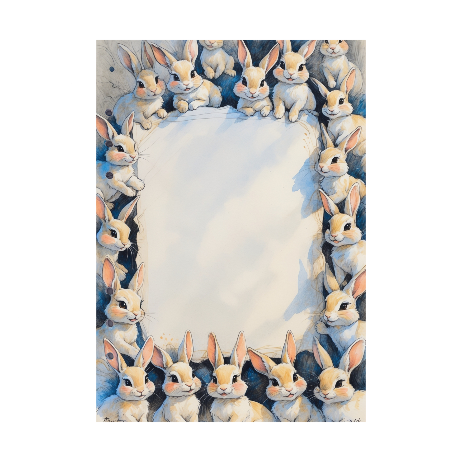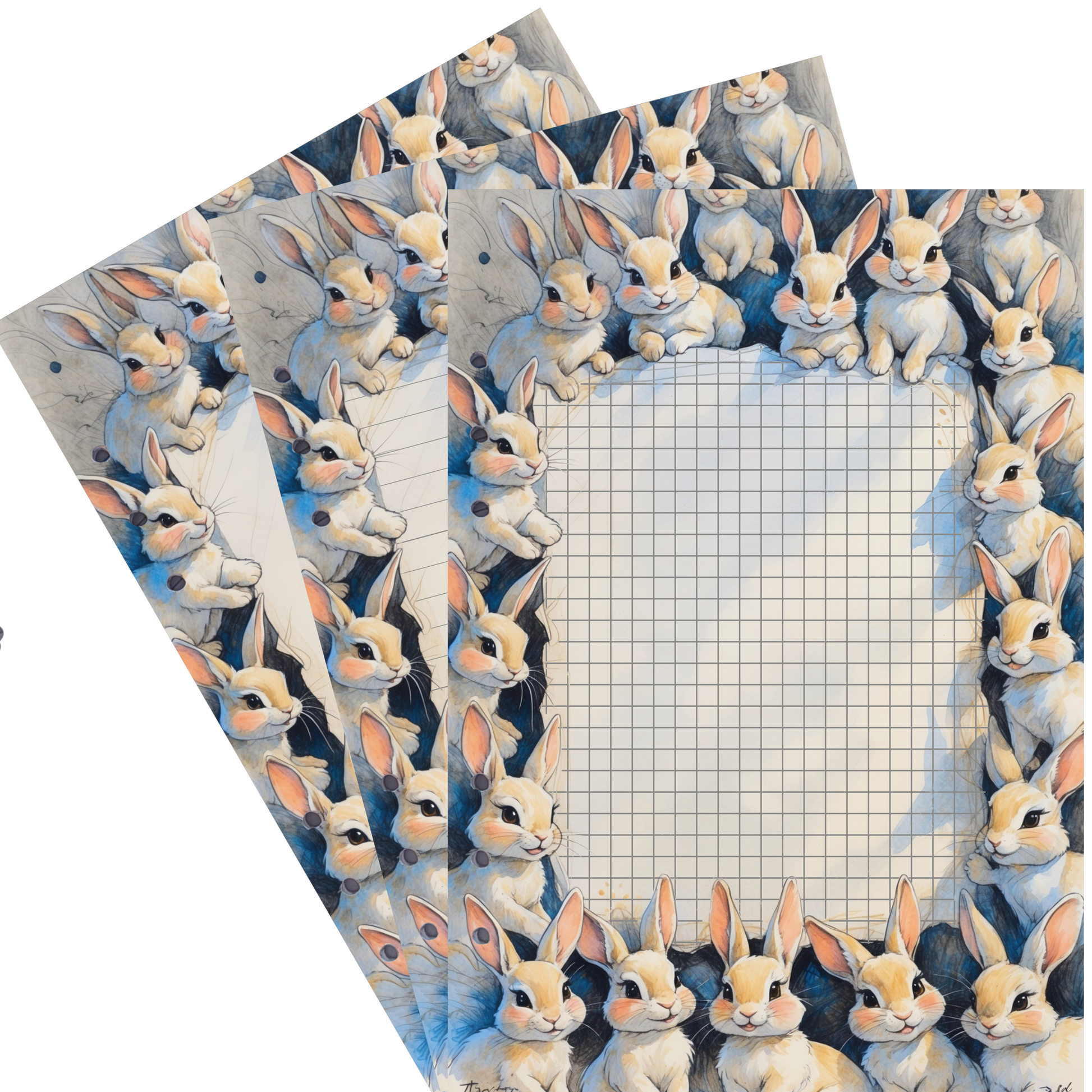 Fröhliches Design: Die vielen weißen Hasen als Rahmen verleihen Ihren Notizen eine verspielte und charmante Osteratmosphäre.
