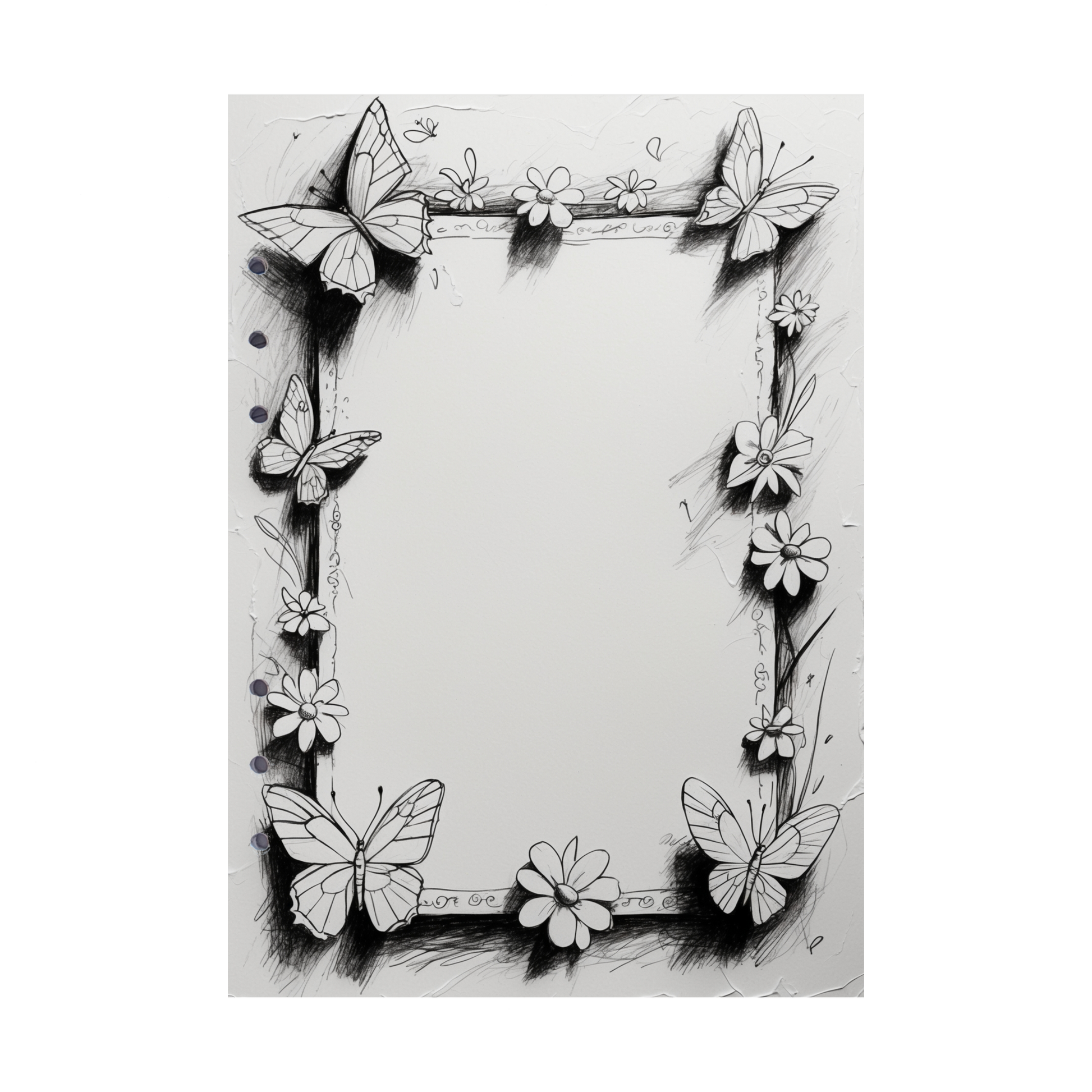 Lassen Sie Ihre Kreativität erblühen mit unseren DIN A5 Ringbucheinlagen im "Happy Easter 54"-Design! Schmetterlinge und Blumen zieren den Rand des Blattes und bieten eine perfekte Vorlage zum Ausmalen und Gestalten. Das Design in Schwarz-Weiß lässt sich ganz nach Ihrem Geschmack mit Farben füllen und macht Ihre Notizen zu einem fröhlichen, persönlichen Kunstwerk.