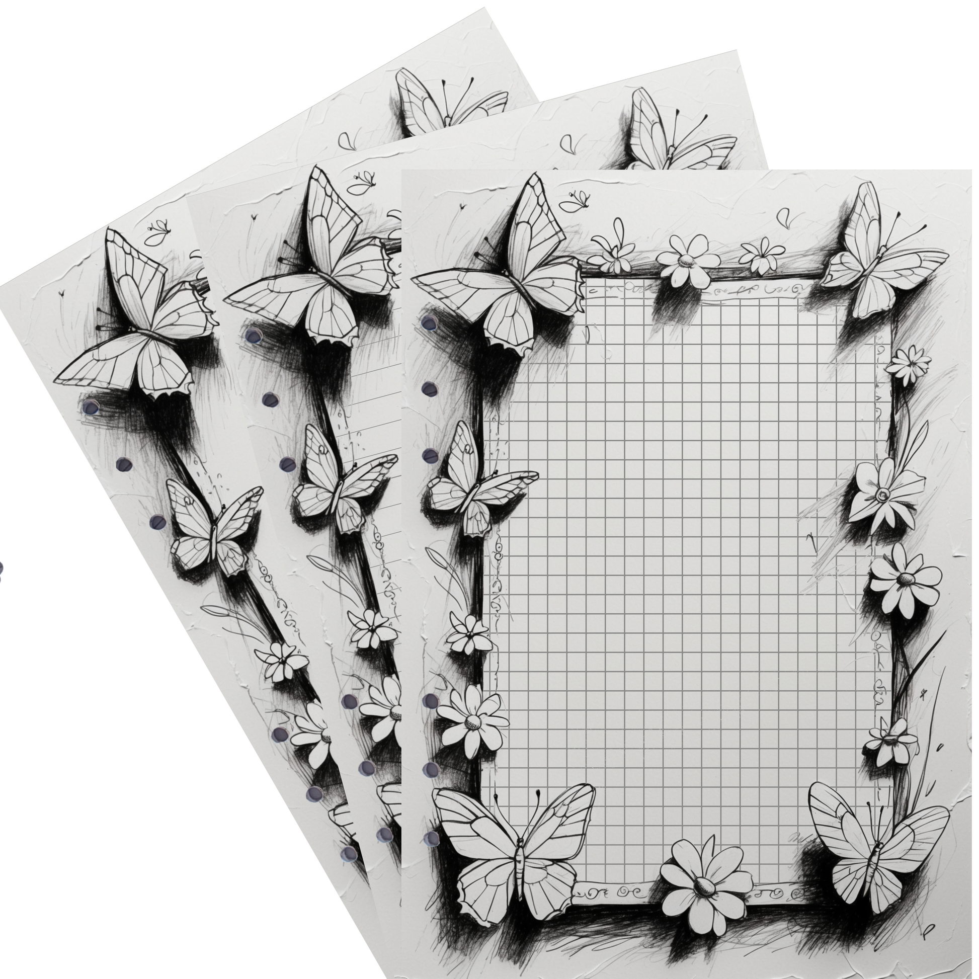 Kreatives Design: Die Schmetterlinge und Blumen bieten eine wunderbare Ausmalvorlage und verleihen Ihren Notizen eine fröhliche und individuelle Note.