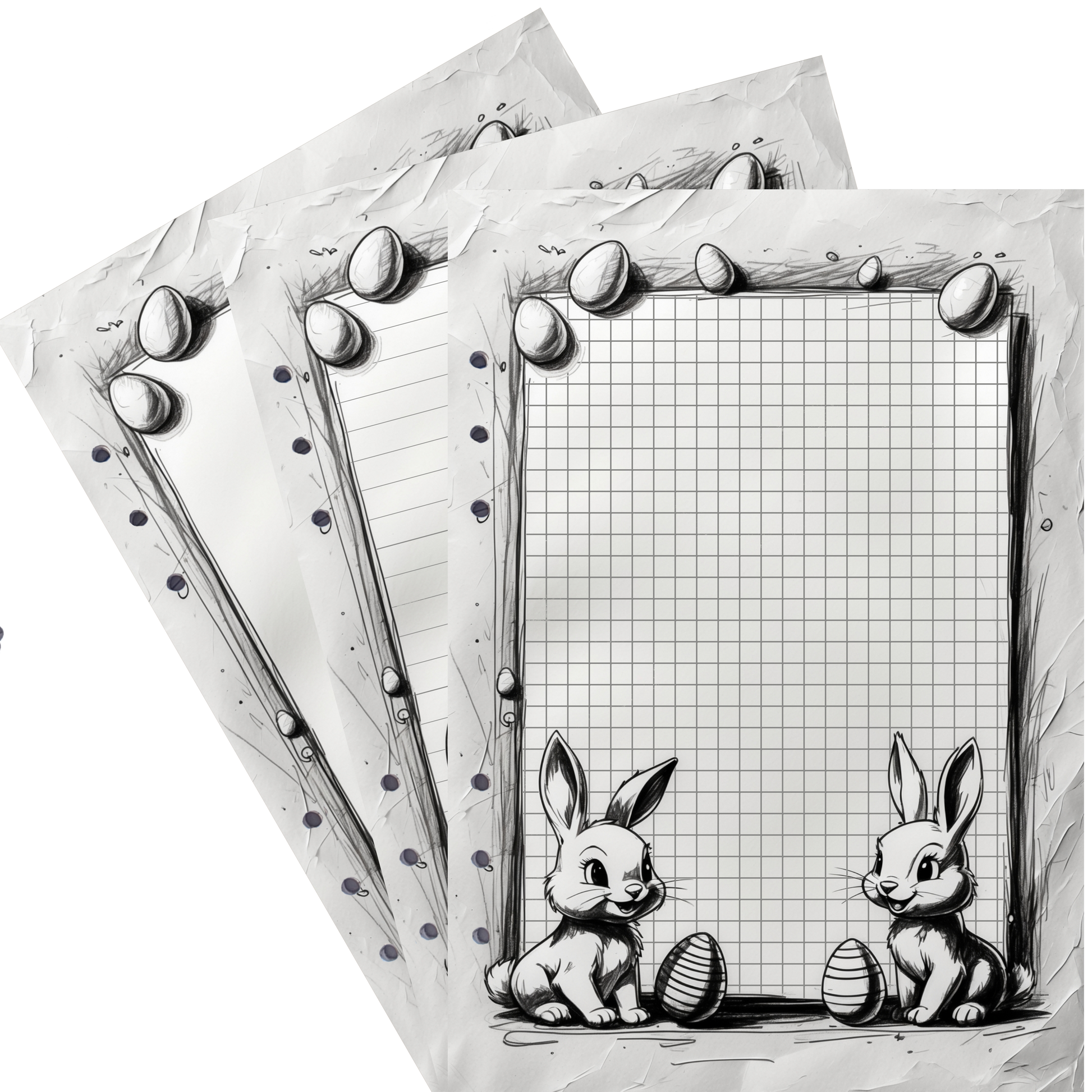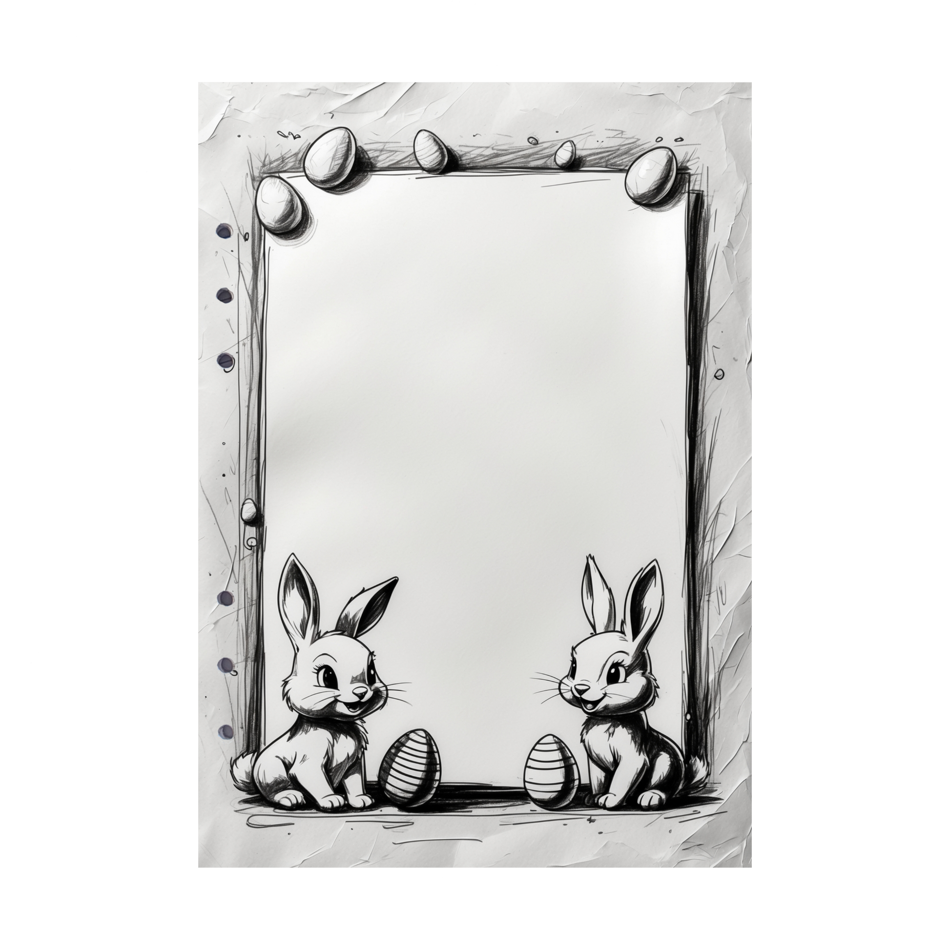 Kreatives Design: Die zwei weißen Hasen und Ostereier bieten eine charmante Ausmalvorlage, die Ihre Notizen in ein einzigartiges Kunstwerk verwandelt.