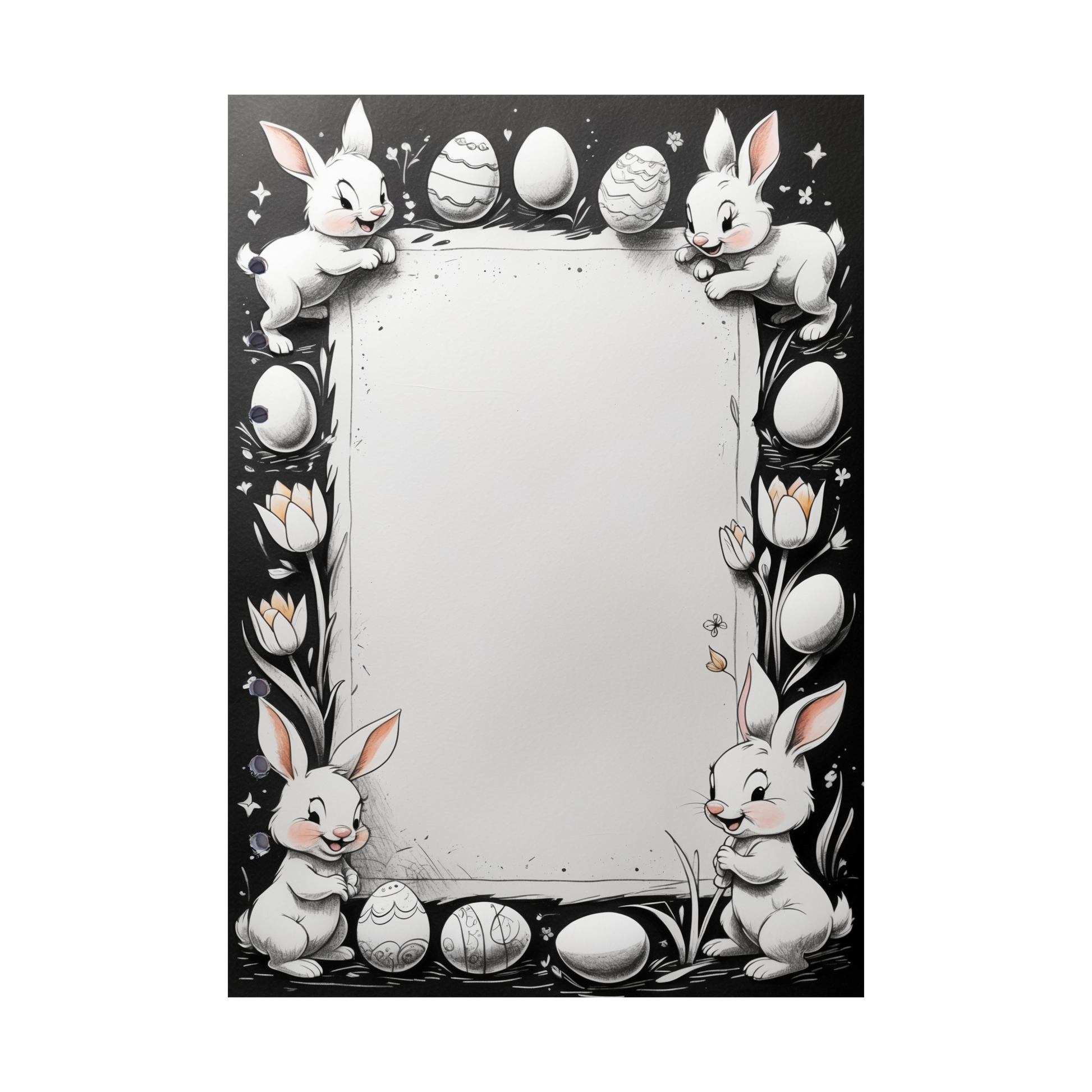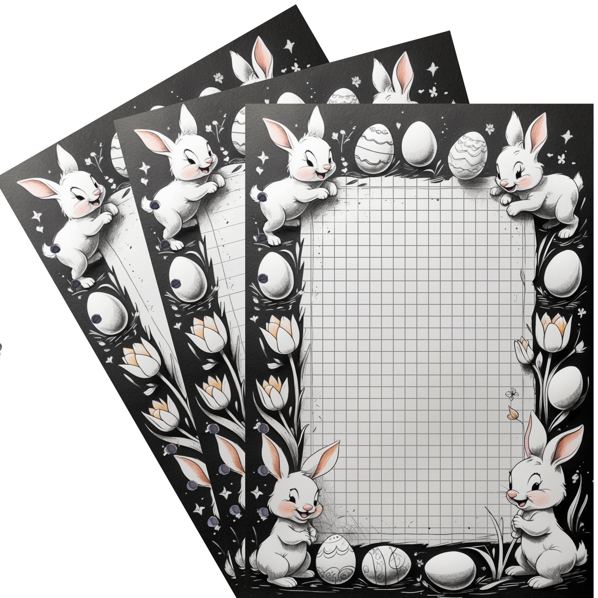 Holen Sie sich festliche Osterstimmung mit unserem "Happy Easter 62"-Design! Weiße Hasen, bunte Ostereier und fröhliche Tulpen zieren den Rand des Blattes, alles auf einem eleganten schwarzen Hintergrund. Das Design wartet darauf, von Ihnen individuell gestaltet und ausgemalt zu werden. Perfekt, um Ihre Notizen oder Erinnerungen mit einem persönlichen Touch zu versehen und Ihre kreative Seite auszuleben.