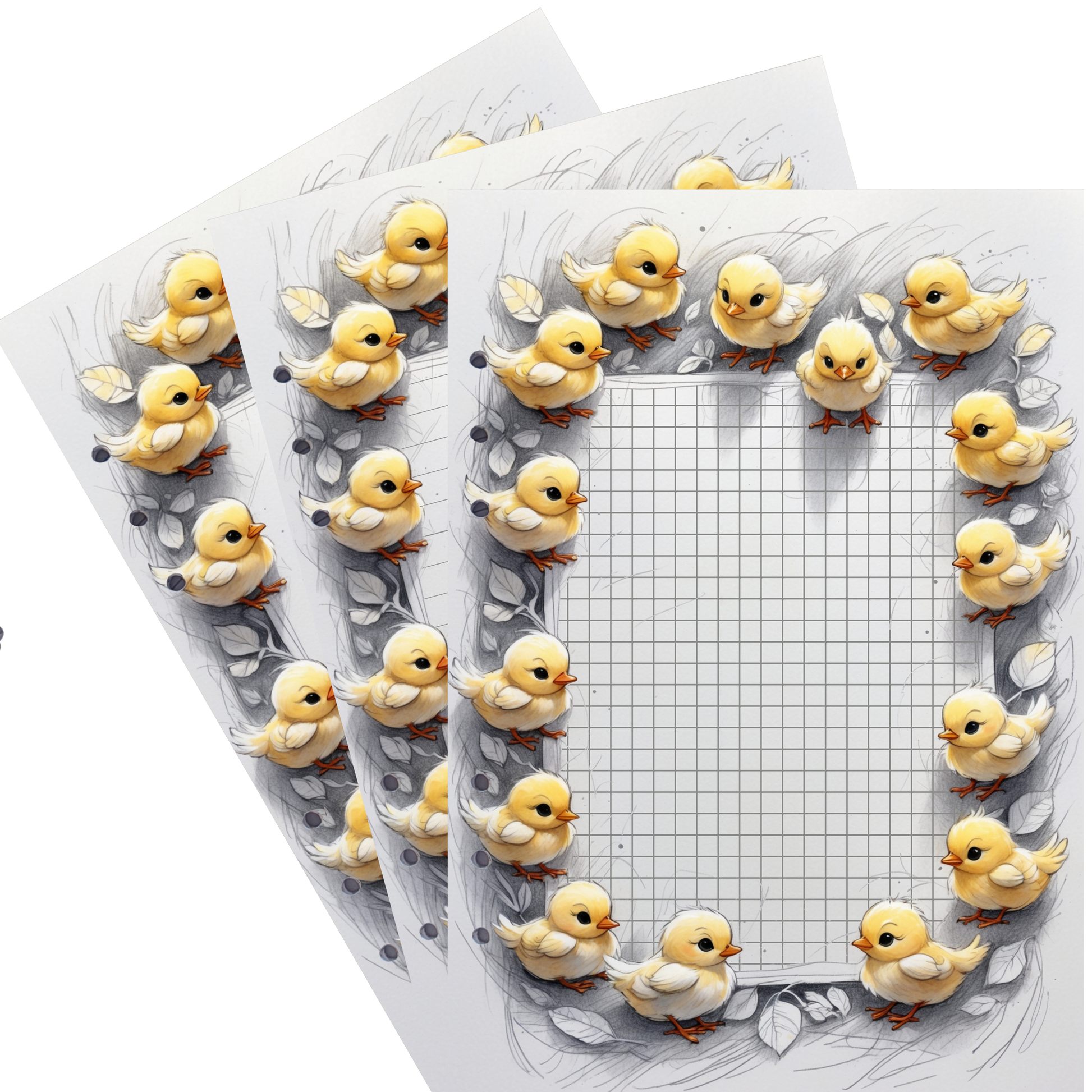 Bringen Sie frühlingshafte Leichtigkeit in Ihre Notizen mit unseren DIN A5 Ringbucheinlagen im "Happy Easter 9"-Design! Dieses verspielte Motiv wird von niedlichen gelben Küken eingerahmt, die eine fröhliche Osterstimmung verbreiten. Perfekt, um kreative Ideen, Erinnerungen oder besondere Gedanken in einem charmanten Stil festzuhalten.