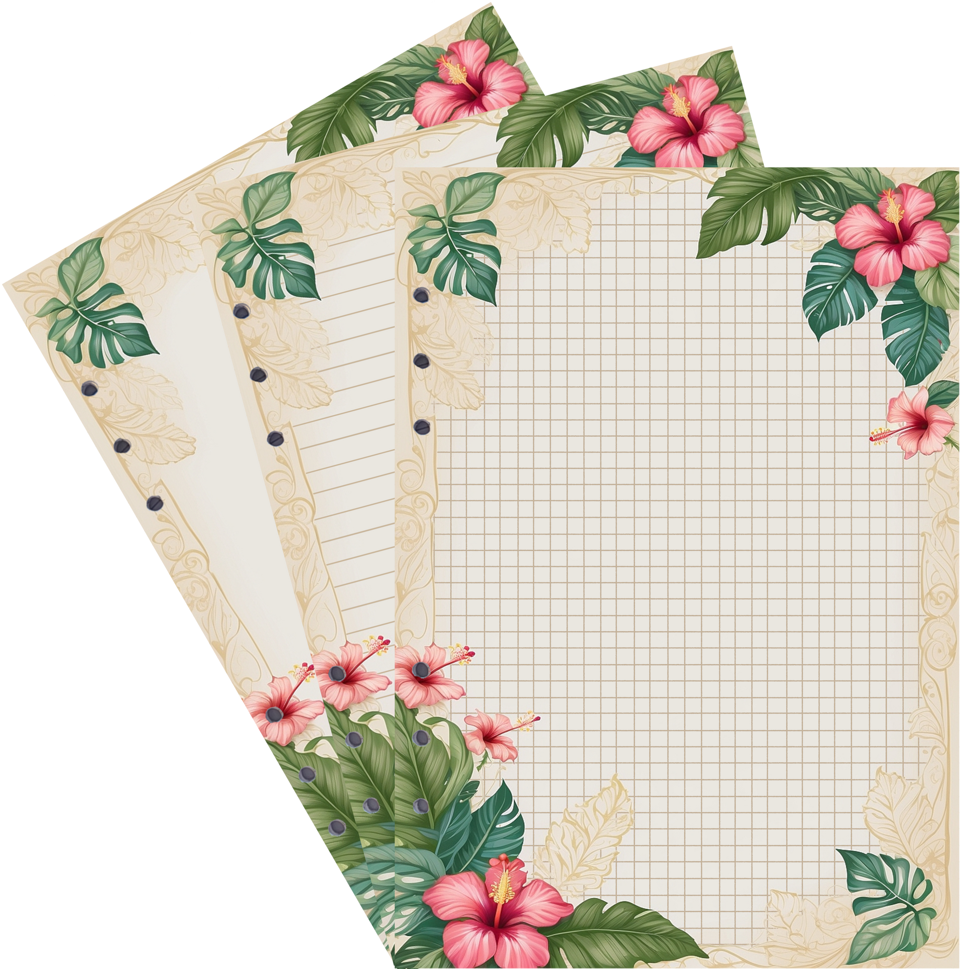 Ergänzen Sie Ihr Ringbuch mit unseren wunderschönen DIN A5 Nachfüllseiten mit Hibiskusblüten und bringen Sie stilvolle Eleganz in Ihre Organisation. Bestellen Sie jetzt und lassen Sie sich von der Schönheit dieser einzigartigen Designs inspirieren! 🌺📚