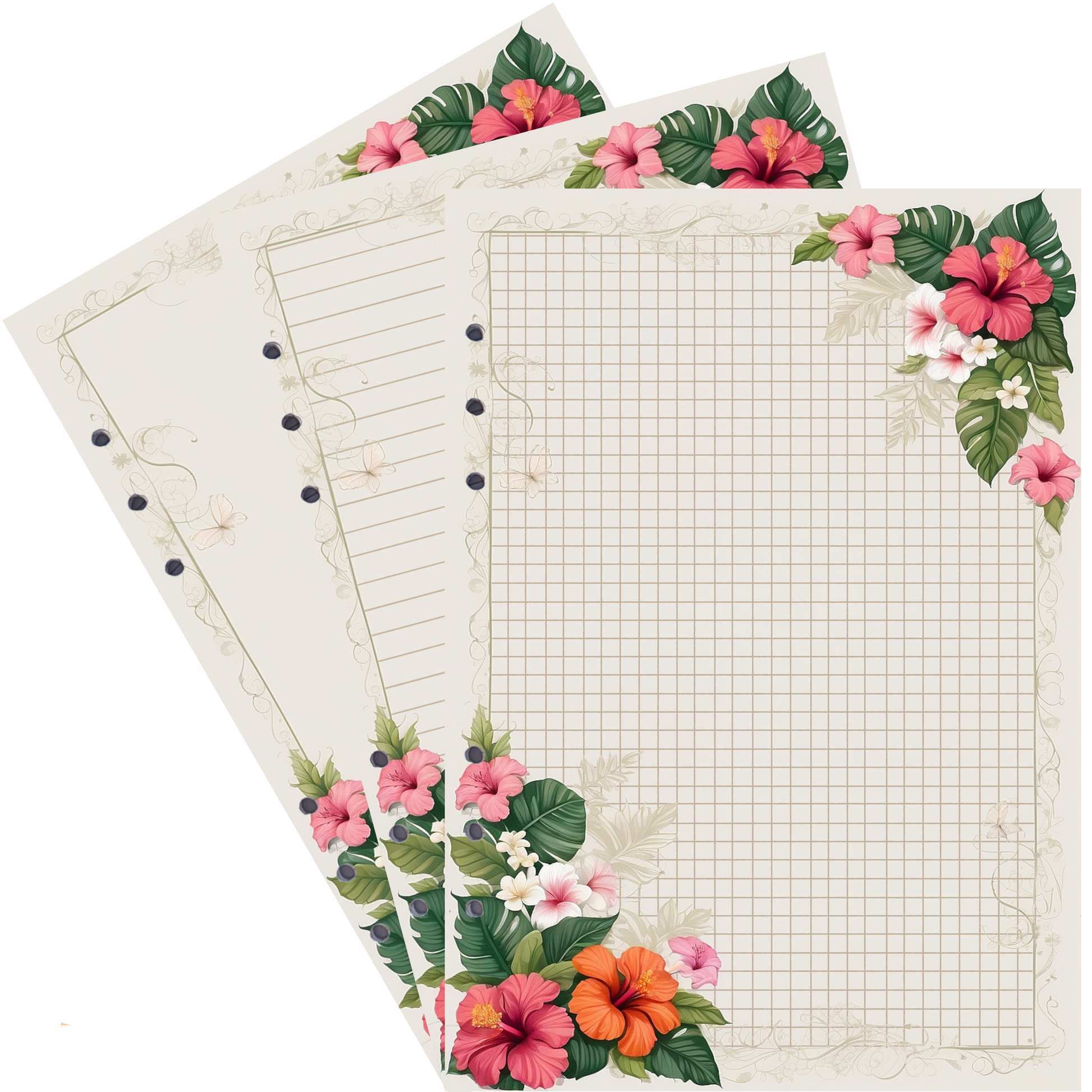 Ergänzen Sie Ihr Ringbuch mit unseren wunderschönen DIN A5 Nachfüllseiten mit Hibiskusblüten und bringen Sie stilvolle Eleganz in Ihre Organisation. Bestellen Sie jetzt und lassen Sie sich von der Schönheit dieser einzigartigen Designs inspirieren! 🌺📚