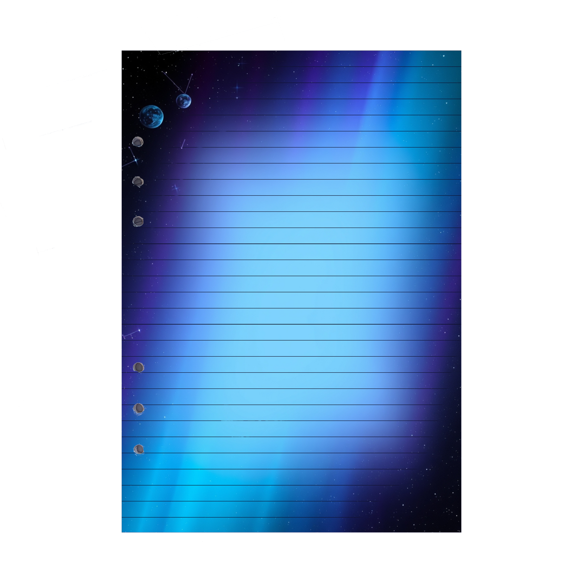 - Kosmisches Design: Der sanfte Übergang von dunklem zu hellem Blau und die zarten Aurora-Farben verleihen Ihrem Ringbuch eine mystische und friedliche kosmische Aura.
