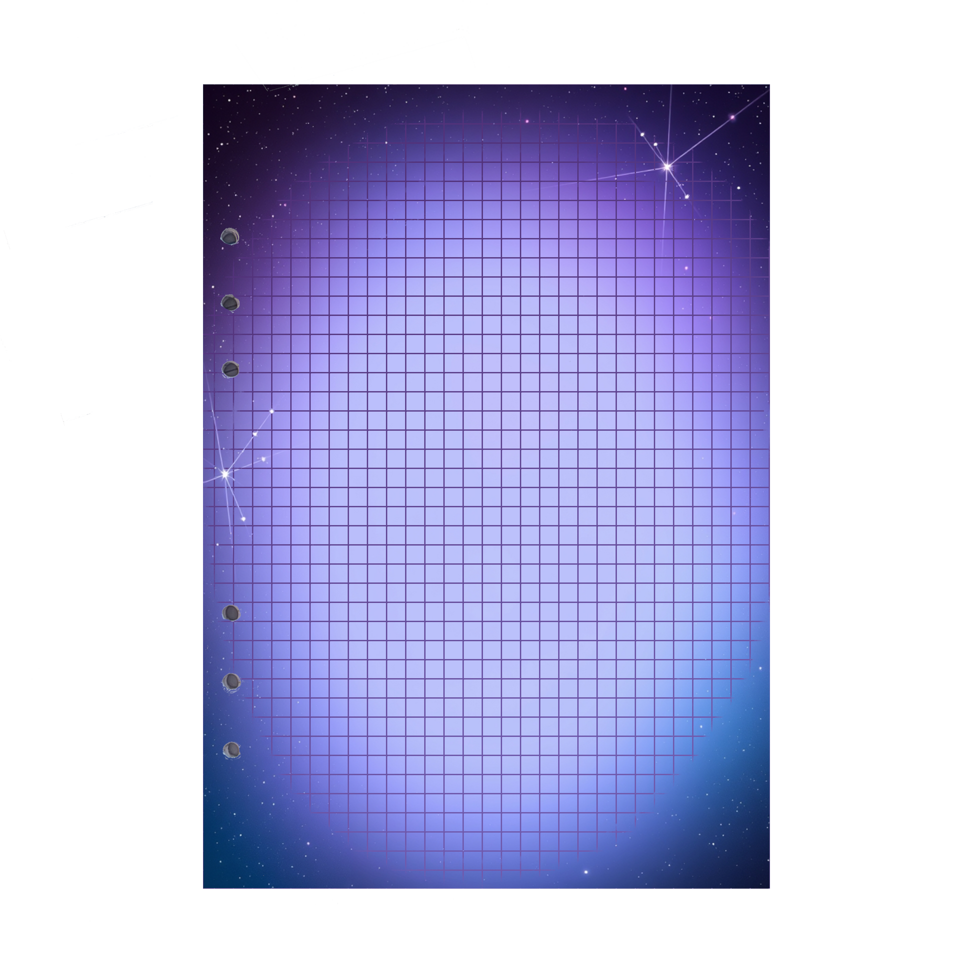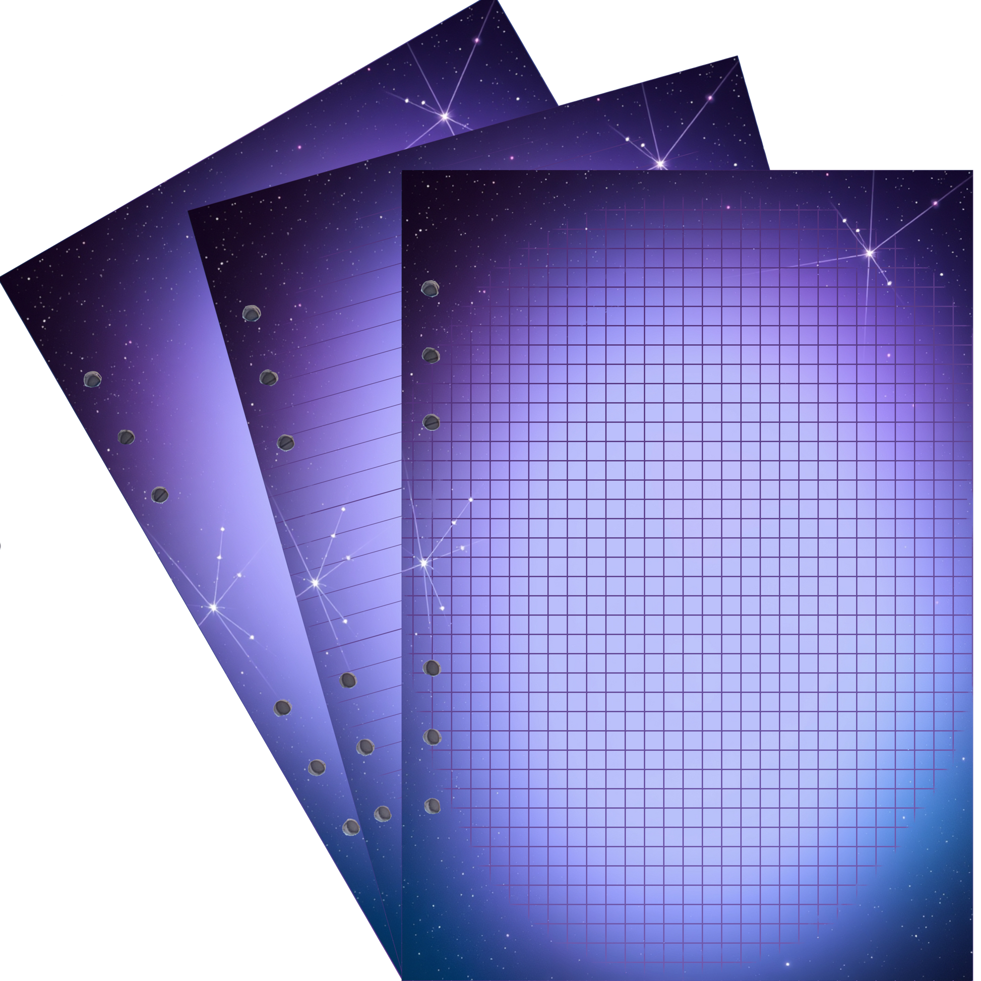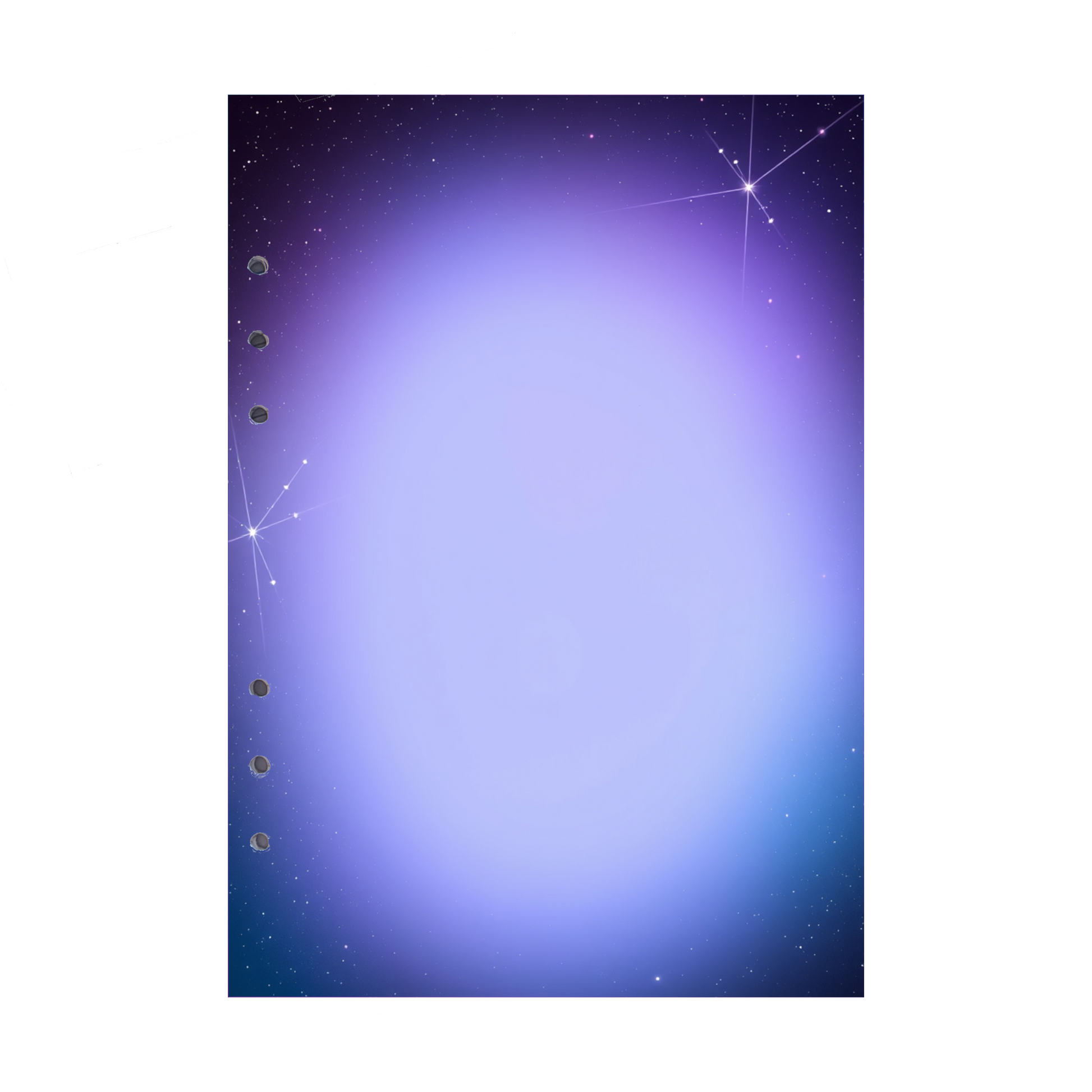 Erleben Sie die sanfte Eleganz des Universums mit unseren DIN A5 Ringbuch Nachfüllseiten im "Magic Cosmos 23"-Design. Ein zartes, helles Violett füllt den zentralen Bereich der Seite, das sich allmählich in einen kräftigen Übergang von Lila zu Blau am Rand verwandelt. Diese harmonische Farbverlauf erzeugt eine ruhige und doch faszinierende Atmosphäre, die Ihre Notizen in ein kosmisches Licht taucht und eine beruhigende, fast träumerische Stimmung erzeugt.