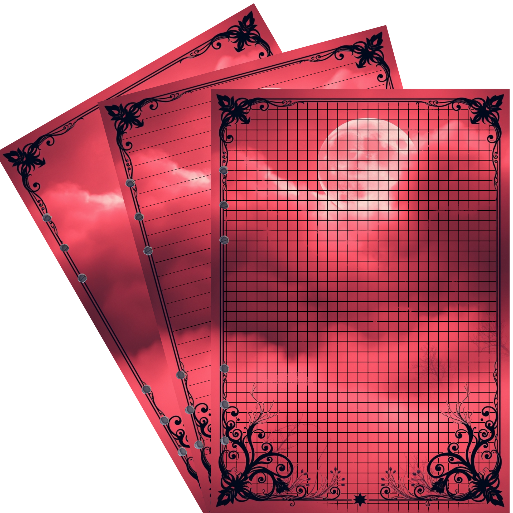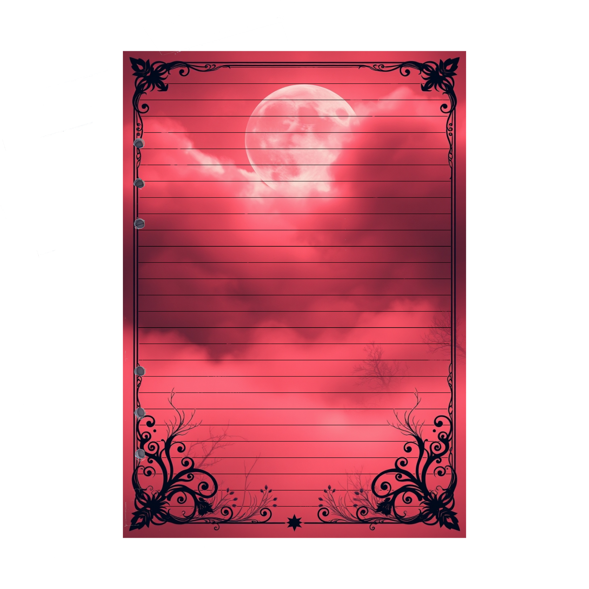 - Elegantes Design: Der kräftige rote Nebel und die sanft schimmernden Baumäste verleihen Ihren Notizen eine besonders mystische, dramatische und inspirierende Atmosphäre.