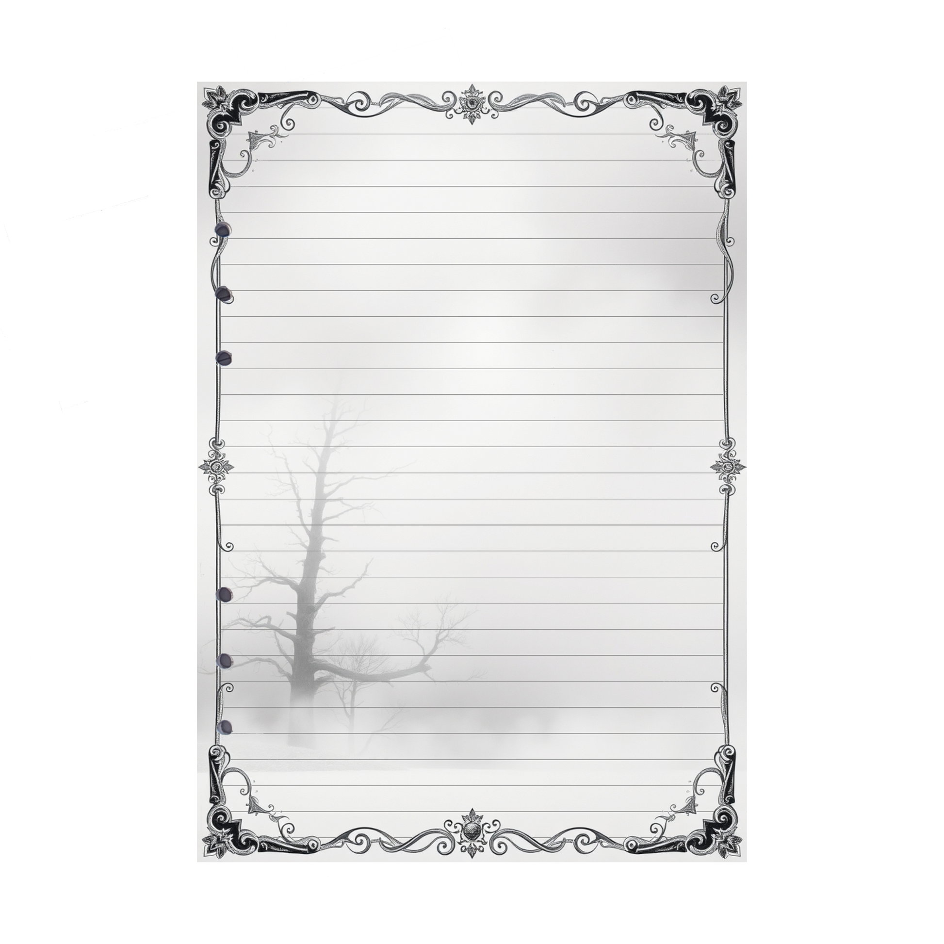 Genießen Sie die stille Schönheit eines winterlichen Märchenlands mit unseren exklusiven DIN A5 Ringbucheinlagen im Mystic Fog 20-Design. Eine weiße Winterlandschaft breitet sich aus, in der ein einzelner kahler Baum majestätisch in der Mitte der Szenerie steht. Dicker, weißer Nebel hüllt die Landschaft ein und lässt die Konturen sanft verschwimmen. Der Schnee bedeckt die Wiese und verleiht der Szene eine ruhige, fast magische Atmosphäre. Diese eisige, aber zugleich friedliche Szenerie eignet sich perfekt für Notizen und Gedanken in einer Atmosphäre von Klarheit und Stille.