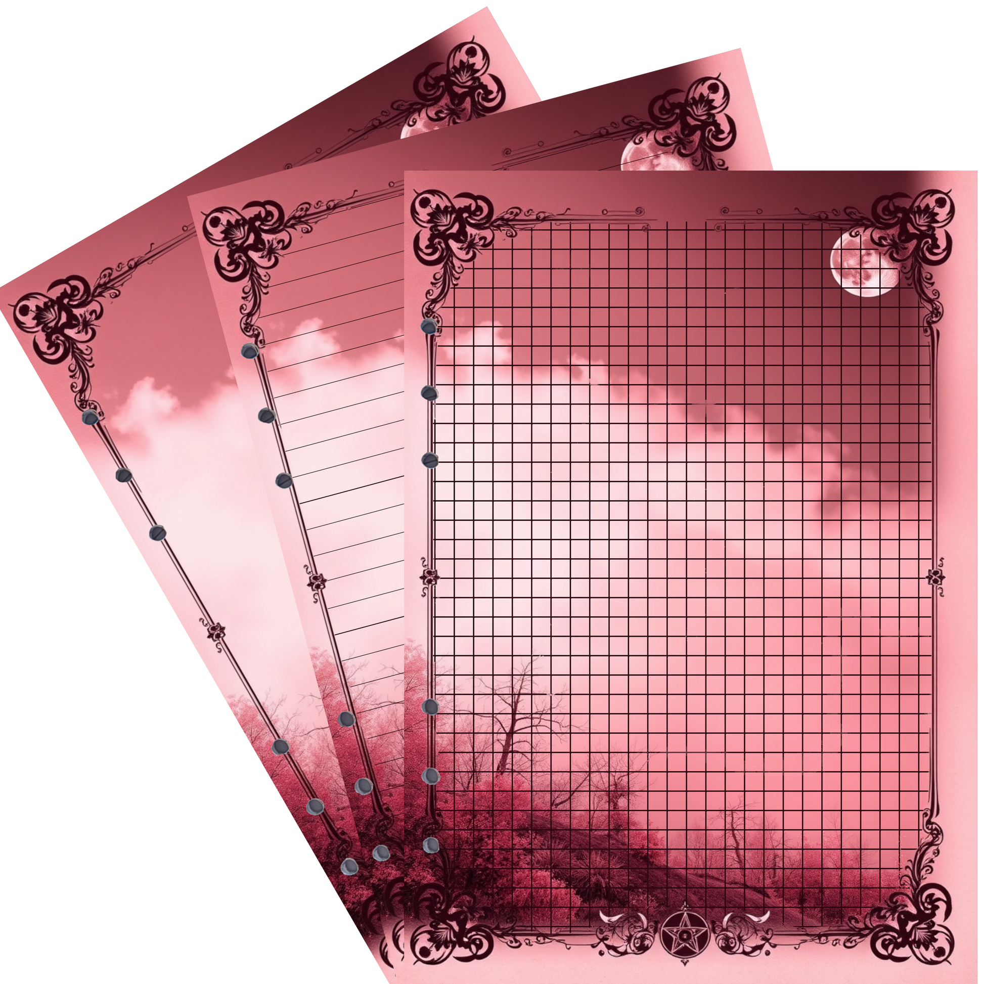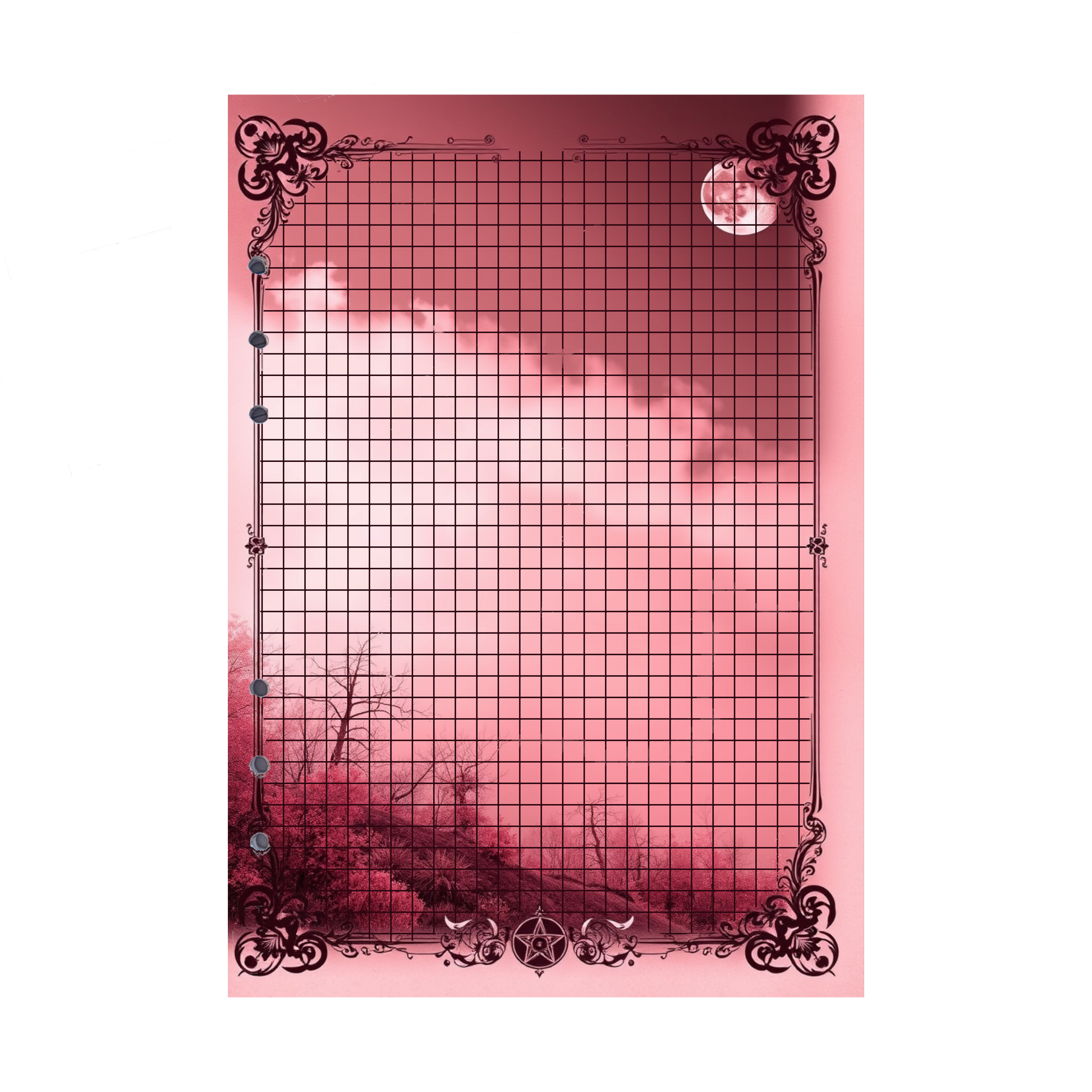 Tauchen Sie ein in die geheimnisvolle Atmosphäre einer mondbeschienenen Landschaft mit unseren exklusiven DIN A5 Ringbucheinlagen im Mystic Fog 23-Design. Eine üppige, von Vegetation gesäumte Landschaft wird von einem strahlenden Vollmond in einem intensiven Weinrot erleuchtet. Im Hintergrund zieht dichter Nebel auf, der die Szenerie in einen mystischen Schleier hüllt. Diese Kombination aus mondlichtgetauchter Landschaft und geheimnisvollem Nebel erzeugt eine außergewöhnliche, fast magische Stimmung, die Ihre Notizen mit einer einzigartigen Energie und Tiefe erfüllt.