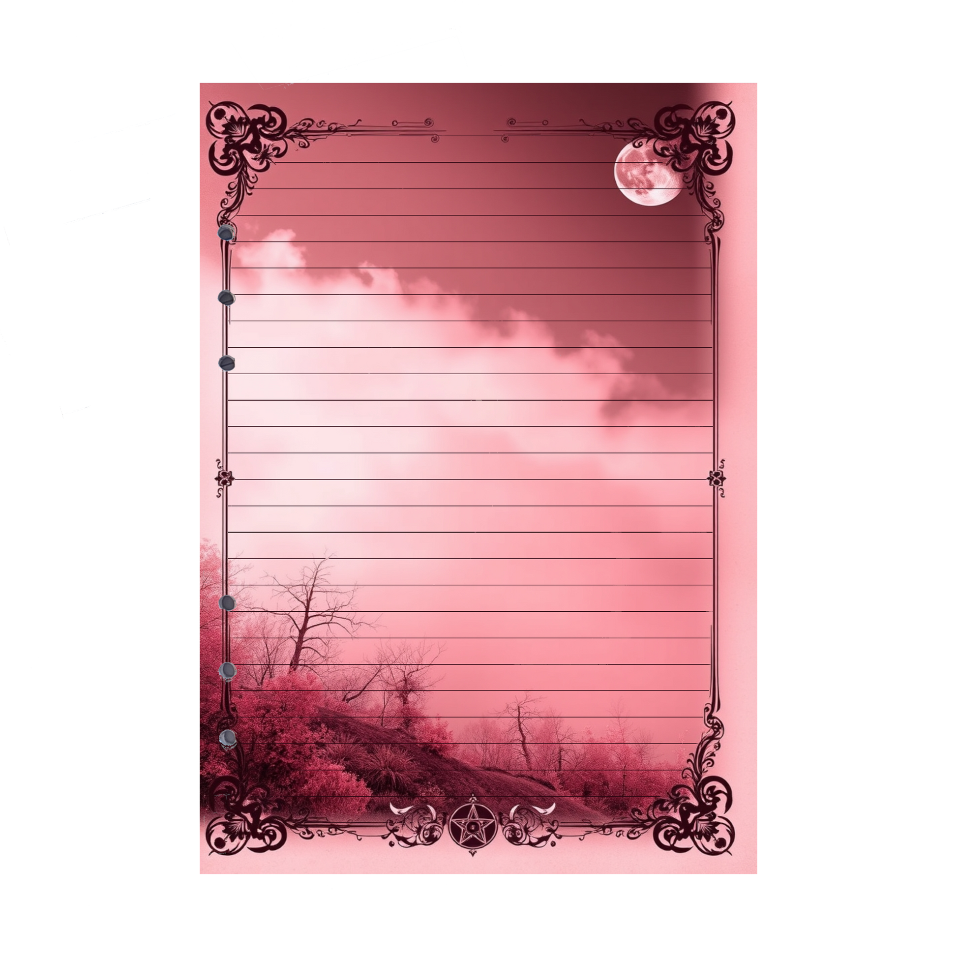 - Elegantes Design: Die weinrote Farbgebung und die geheimnisvolle Mondlandschaft verleihen Ihren Notizen eine besonders inspirierende, verträumte und mystische Atmosphäre.