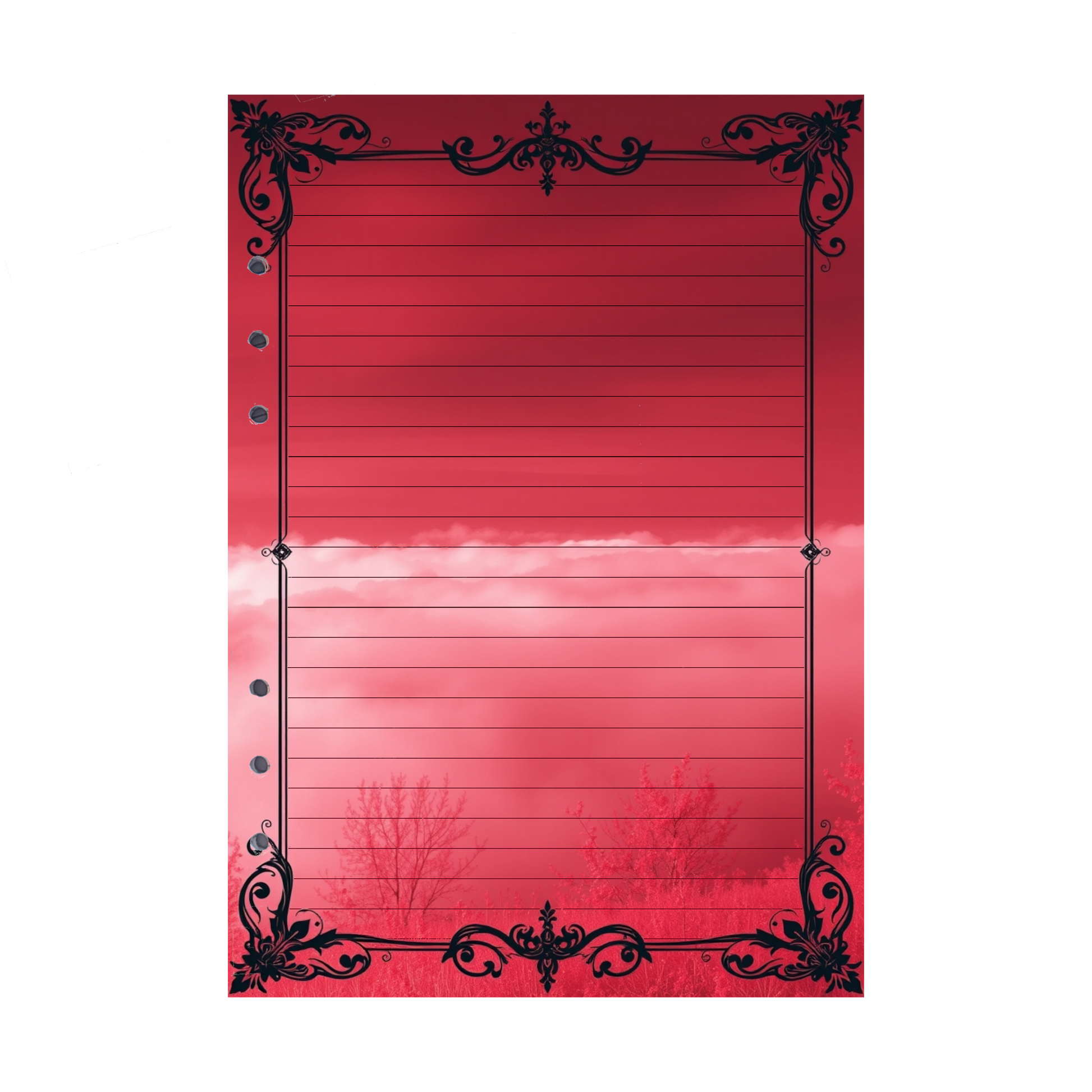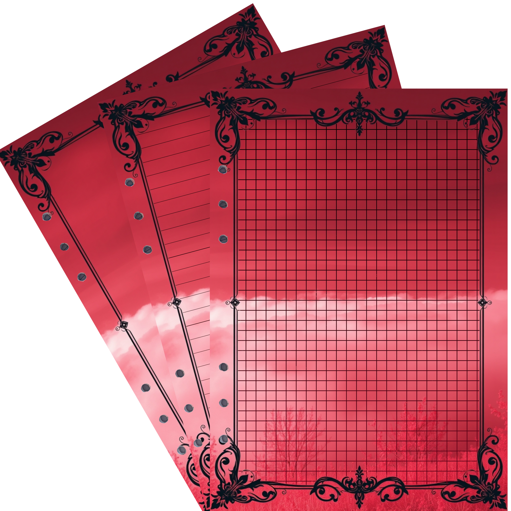 - Elegantes Design: Das helle, intensive Rot und der dichte Nebel verleihen Ihren Notizen eine besonders dramatische, inspirierende und geheimnisvolle Atmosphäre.