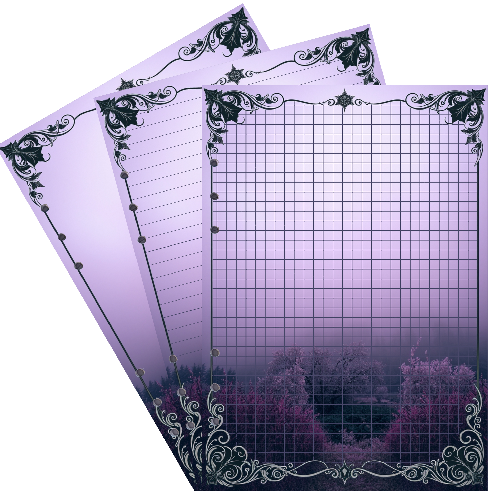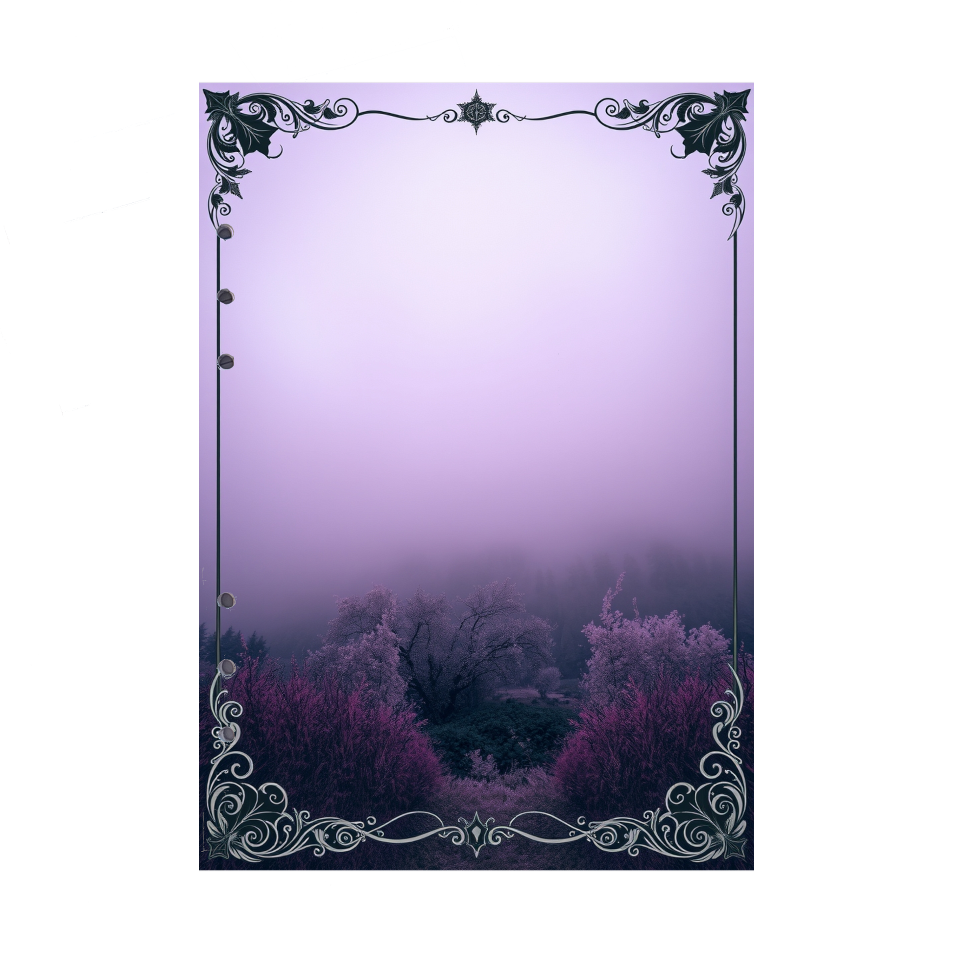Erleben Sie die beruhigende Magie eines Waldes in sanften Lavendeltönen mit unseren exklusiven DIN A5 Ringbucheinlagen im Mystic Fog 31-Design. Dieser Wald, der in zarten Farbtönen von Lavendel schimmert, ist von einem mystischen, violetten Nebel umhüllt, der ihm eine geheimnisvolle und fast magische Atmosphäre verleiht. Die harmonische Farbpalette aus zartem Lavendel und tiefem Violett lädt dazu ein, in eine verträumte, ruhigere Welt einzutauchen und Ihre Gedanken in einer stimmungsvollen, inspirierenden Umgebung festzuhalten.