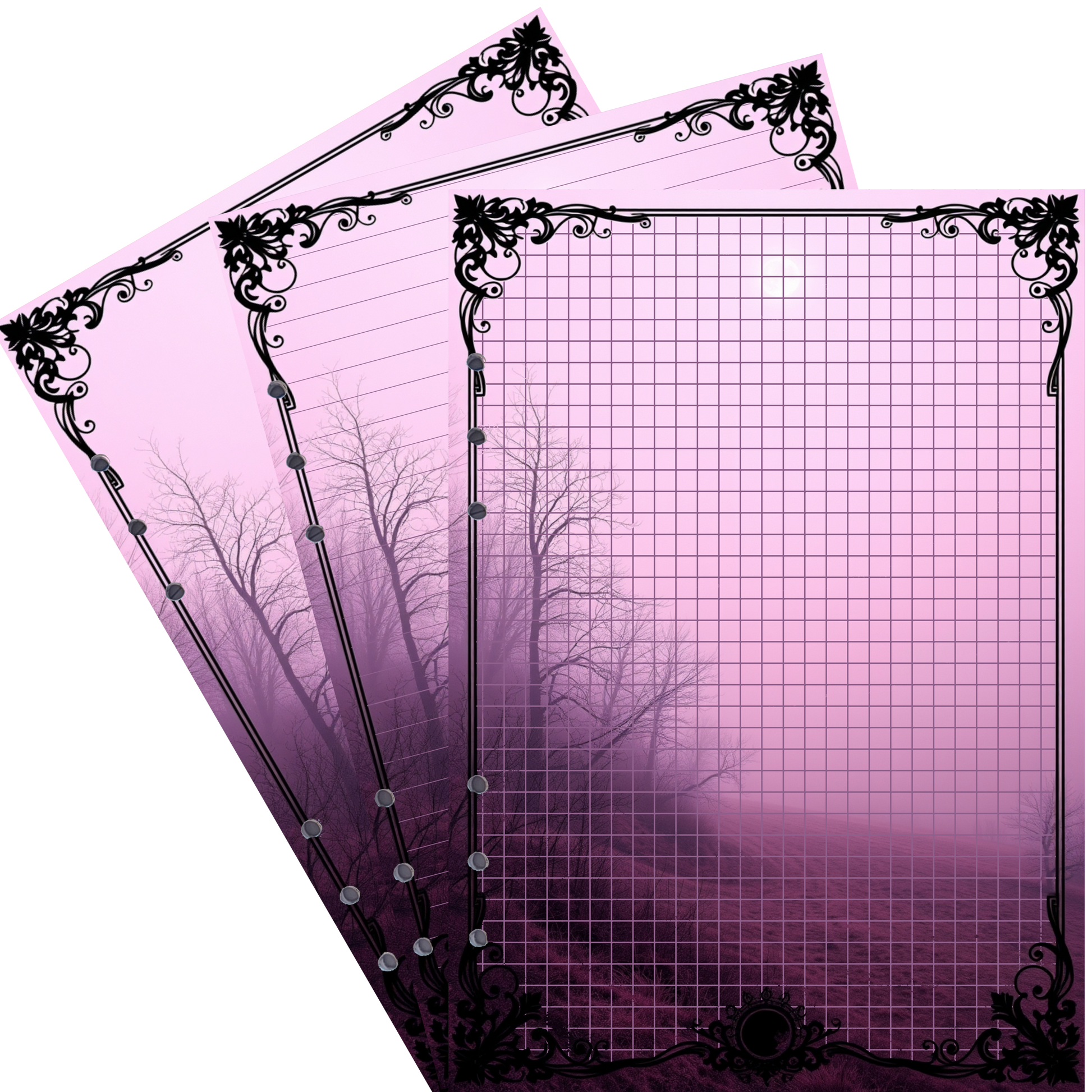 Lassen Sie sich von der geheimnisvollen Schönheit eines sanften Waldhangs verzaubern mit unseren exklusiven DIN A5 Ringbucheinlagen im Mystic Fog 36-Design. Ein Feld, das leicht an einem Waldrand ansteigt, erscheint in kräftigem Lilaton, während der Nebel in einem weicheren, sanften Lila darüber schwebt. Diese harmonische Farbgestaltung erzeugt eine mystische, beinahe träumerische Atmosphäre und ist perfekt für all jene, die ihre Gedanken in einer beruhigenden, von Nebel umhüllten Landschaft festhalten möchten.