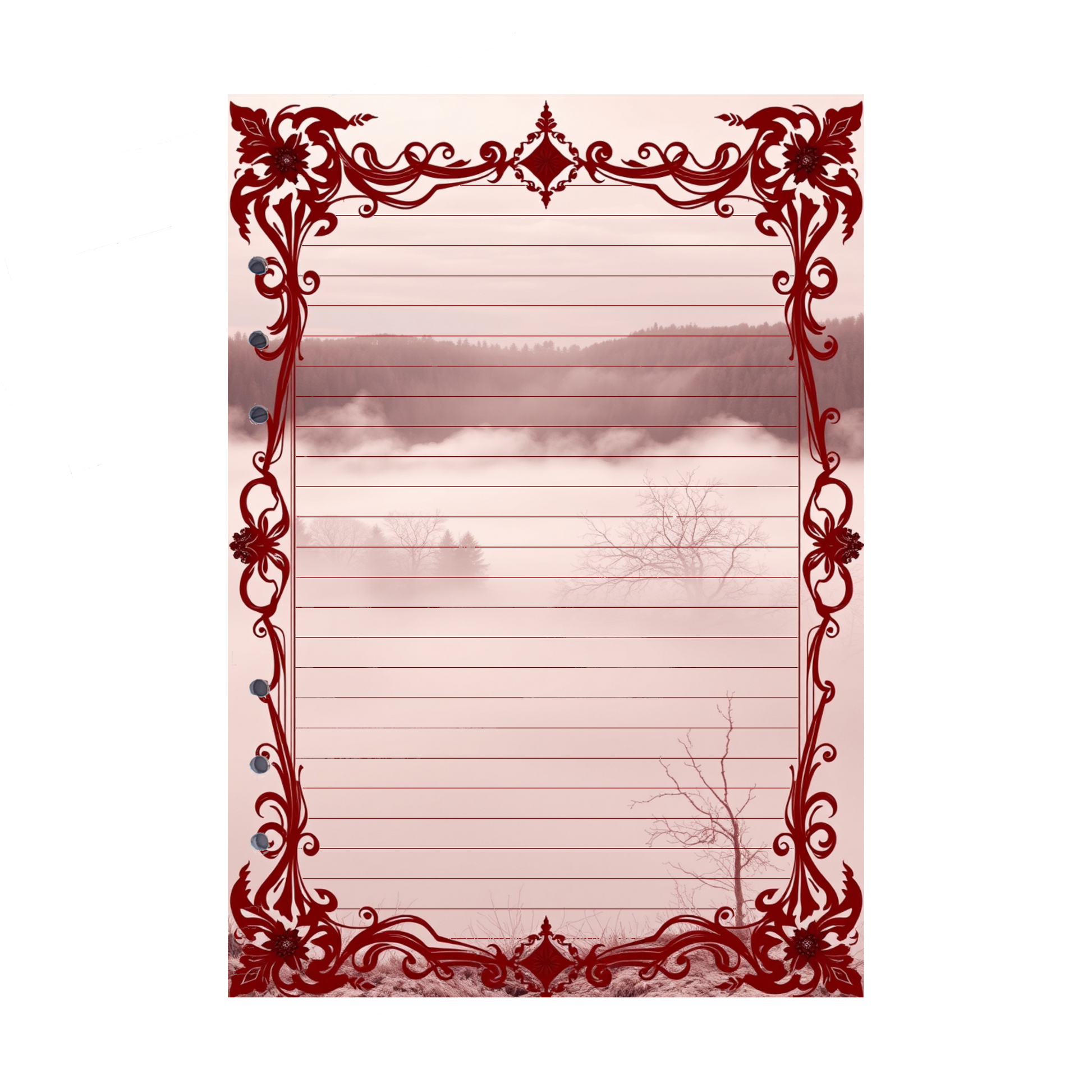 - Elegantes Design: Die sanften Rosétöne und die nebelverhangene Landschaft verleihen Ihren Notizen eine besonders ruhige und kreative Atmosphäre.