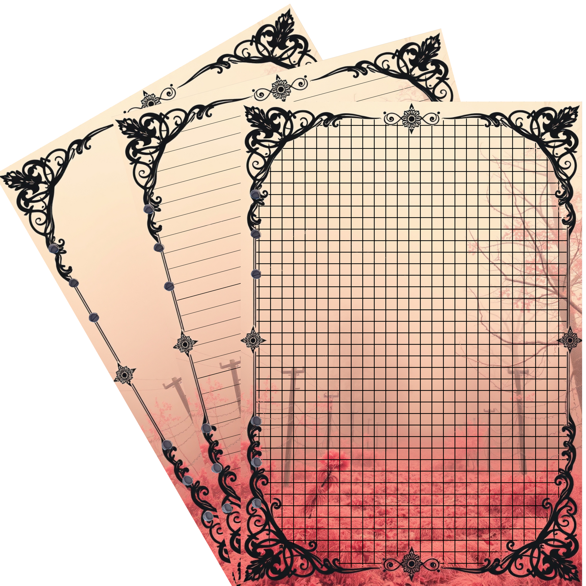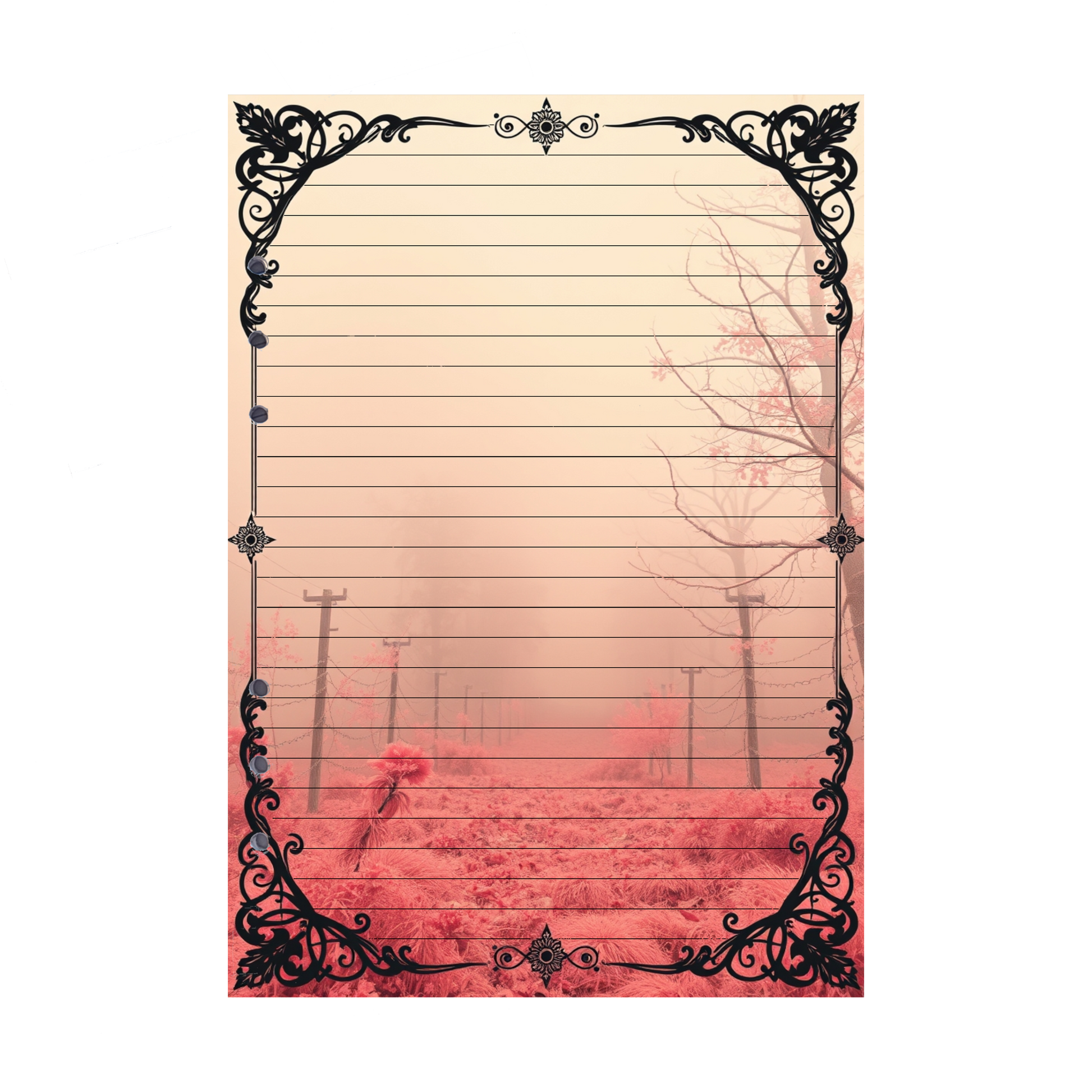 Tauchen Sie ein in eine geheimnisvolle Szenerie mit unseren exklusiven DIN A5 Ringbucheinlagen im Mystic Fog 51-Design. Ein zugewachsener, alter Pfad verläuft entlang von Weidenzünen, die den Weg von beiden Seiten säumen. Das Gras auf dem Pfad leuchtet in kräftigem Lachs, bevor es sanft in den Nebel übergeht, der die Umgebung in eine mystische Stille hüllt. Diese Kombination aus leuchtenden Farben und geheimnisvollem Nebel sorgt für eine kreative und inspirierende Atmosphäre – perfekt für Ihre Gedanken, Skizzen und Ideen.