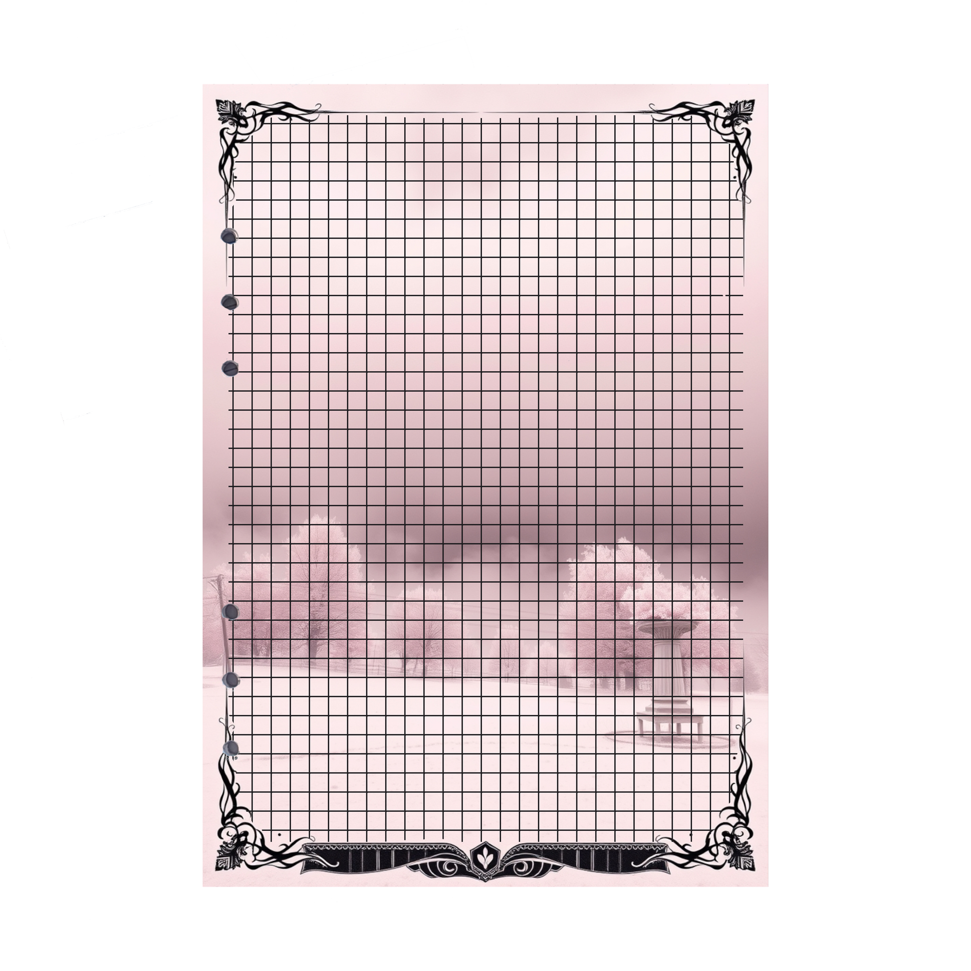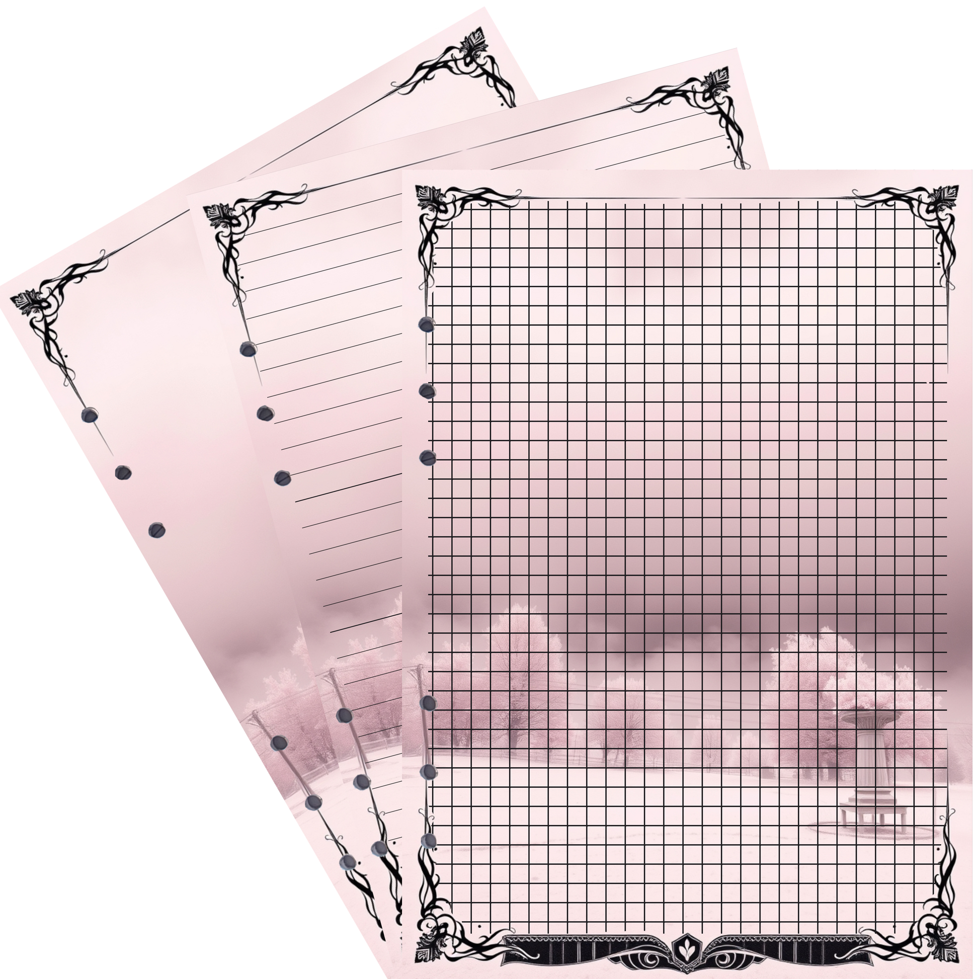 Lassen Sie sich von der friedlichen Schönheit einer weitläufigen Wiese mit unseren exklusiven DIN A5 Ringbucheinlagen im Mystic Fog 54-Design verzaubern. Die sanft gewellte Wiese, durchzogen von einigen Bäumen und einer markanten Litva-Säule, verströmt eine ruhige, harmonische Atmosphäre. Am Ende des Weges erhebt sich ein solider Holzzaun, der die Szene abschließt. Alles in sanften Rosatönen gehalten, vermittelt dieses Design eine ruhige und verträumte Stimmung – ideal für kreative Gedanken und stilvolle Notizen.