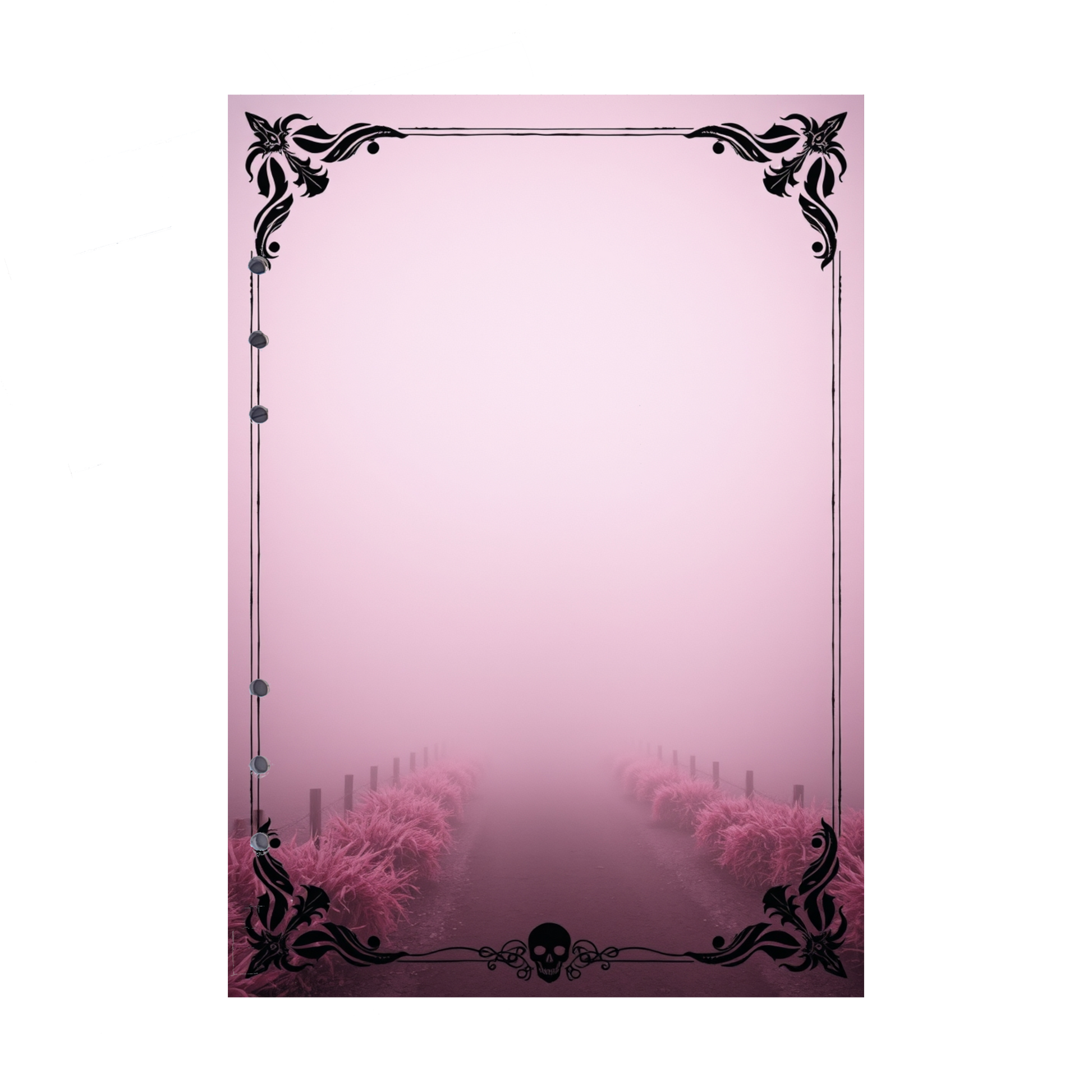 Erleben Sie die zauberhafte Atmosphäre eines mystischen Weges mit unseren exklusiven DIN A5 Ringbucheinlagen im Mystic Fog 57-Design. Der Weg, der sich entlang von zwei Weideflächen schlängelt, ist von bewachsenen, zaunartigen Umrandungen gesäumt. Der Nebel hüllt alles in eine geheimnisvolle Stille, während die pinkfarbenen Töne des Designs eine verträumte und fast surreale Stimmung erzeugen. Perfekt für all jene, die ihre Gedanken in einer magischen Umgebung festhalten möchten.